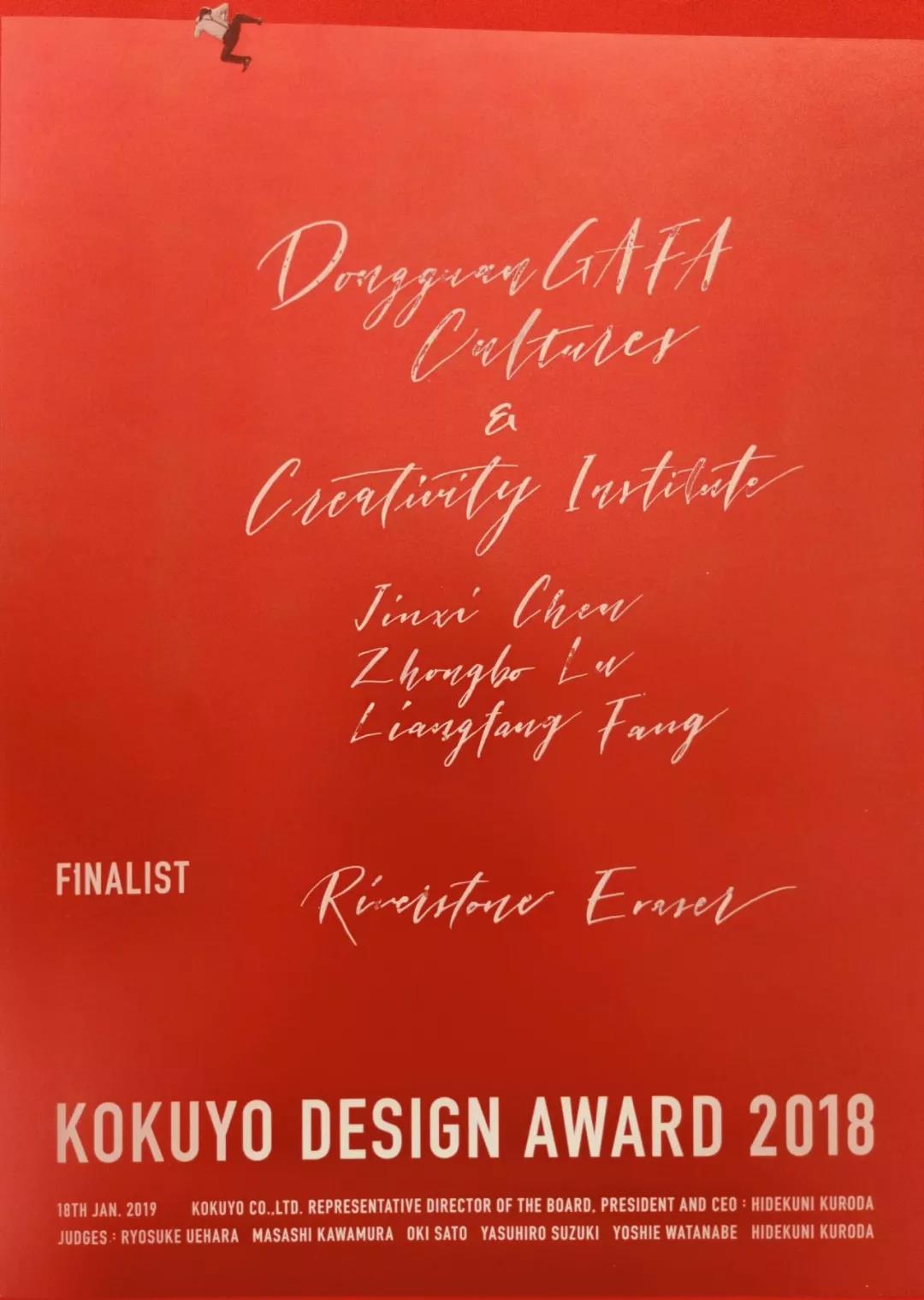 1月18日,日本国誉设计大赛终审答辩及颁奖典礼在日本东京举行,我校工业设计学院生活设计工作室教师张剑的指导学生陈锦溪、卢钟波、方良芳合作作品《雨花石橡皮擦》(东莞广美文化创意研究院资助项目)获得本年度国誉设计大赛的入围奖。该工作室大四学生陈锦溪、卢钟波、方良芳参加了本次答辩及颁奖典礼,这是生活工作室成立以来获得的第一个日本国誉设计大赛的奖项。