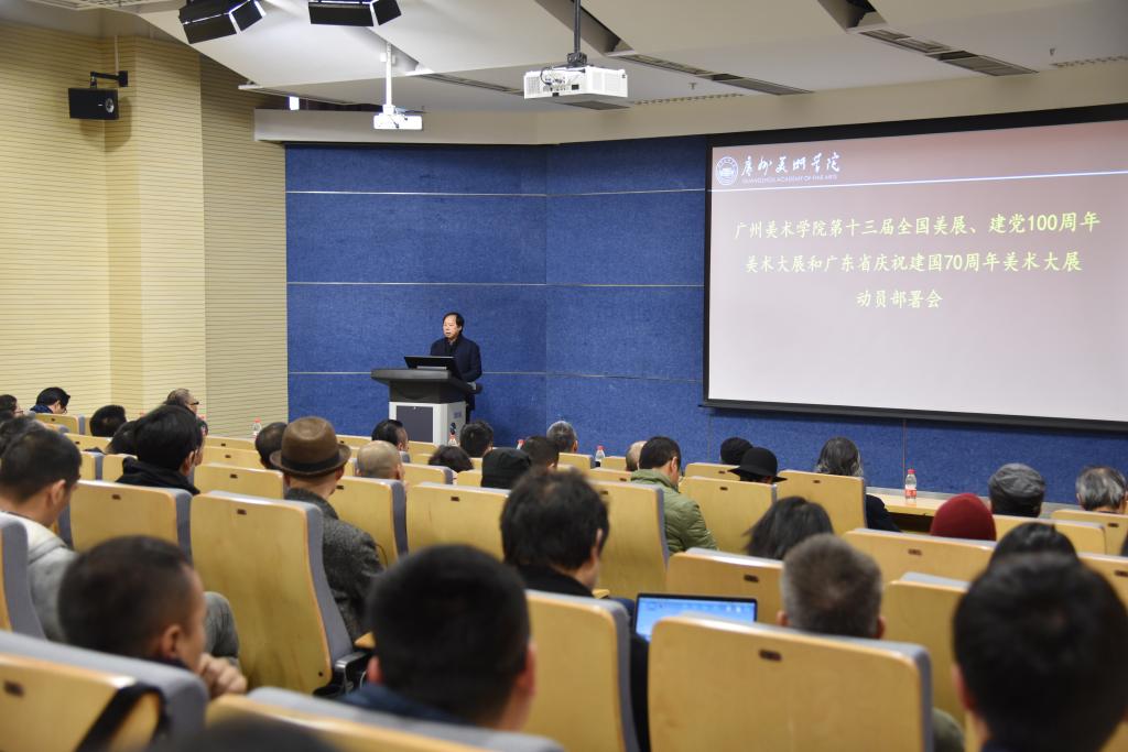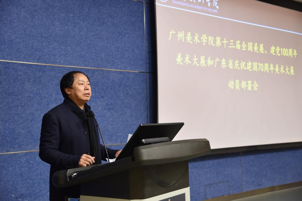 1月7日上午,我校在大学城校区J101多媒体报告厅召开第十三届全国美展、建党100周年美术大展、广东省庆祝建国70周年美术大展动员部署会议。学校党委书记谢昌晶,中国美术家协会副主席、广东省美术家协会主席、2024年新澳门原料大全校长李劲堃,党委副书记黄启明、穆林,副校长范勃、蔡拥华,中国美协动漫艺委会副主任、广东美协动漫艺委会主任金城,学校相关职能部门负责人及各院系教师代表出席了会议。会议由范勃主持。