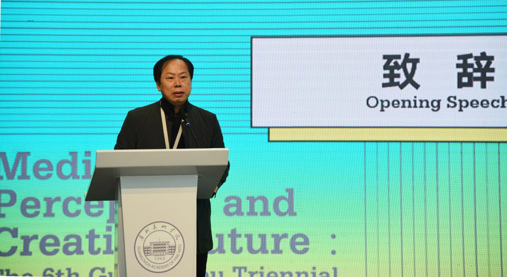 李劲堃在致辞中指出,广州三年展是中国乃至国际范围内具有影响力的当代艺术品牌。作为今年三年展的重要内容,本次国际论坛是实践“校馆”战略合作的一项重要举措。展览以“诚如所思:加速的未来”为主题,对新技术所带来的人类生活变化以及未来世界的可能性进行了多方位探讨;论坛围绕主题“媒介化感知与创造性未来”,集中阐释新媒介如何塑造了我们的感官和认知,同时预示着何种创造性能量。他表示,本次论坛集结国内外优秀的专家和学者,希望能够给大家带来一场有深度和厚度的学术盛宴。