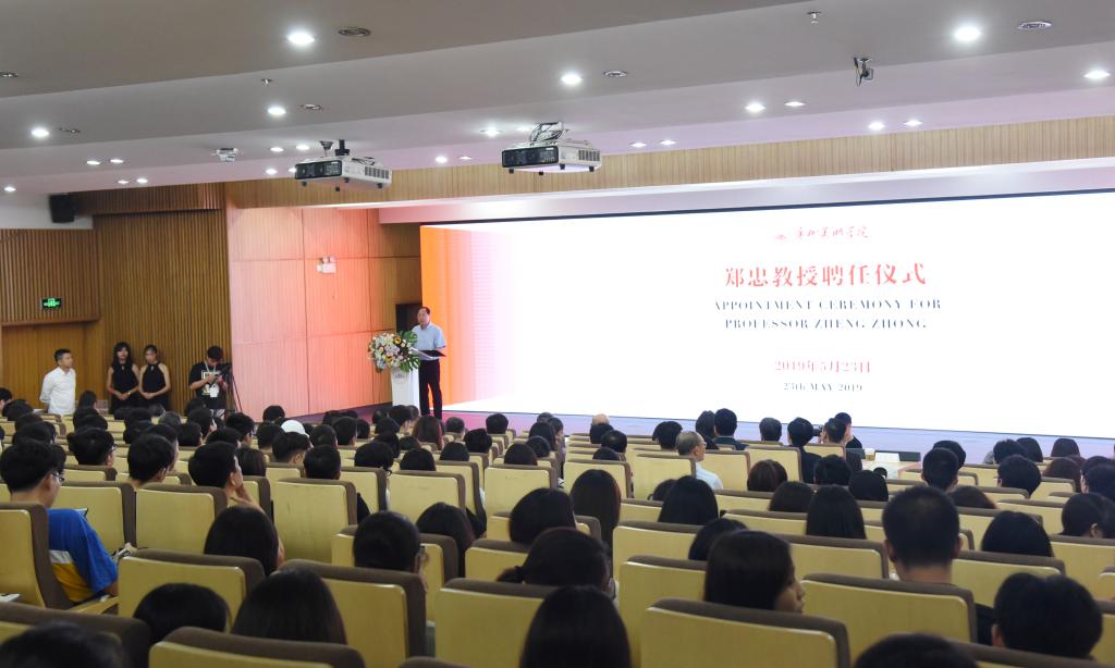 仪式最后,郑忠教授做了答谢致辞并赠送纪念品给母校。郑忠教授在答谢词中对母校表达了感谢之情,他表示将竭尽所能,在学科建设、人才培养等方面与母校进行探讨合作,与全体教师一起努力,为学校的学科建设和人才培养贡献力量。