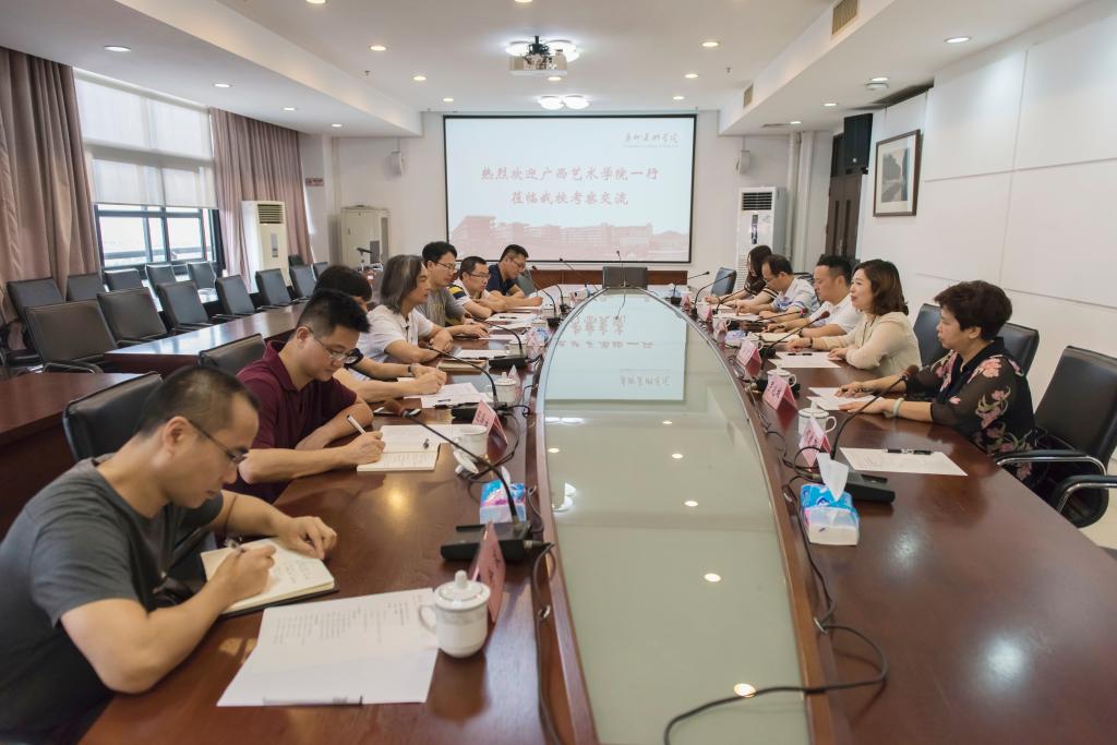 5月17日上午,广西艺术学院招生办主任周丽一行6人到我校大学城校区开展调研交流。学校副院长蔡拥华、招生考试中心主任郑浩华、信息技术中心主任陈泽生及相关职能部门人员热情接待,并进行交流座谈。
