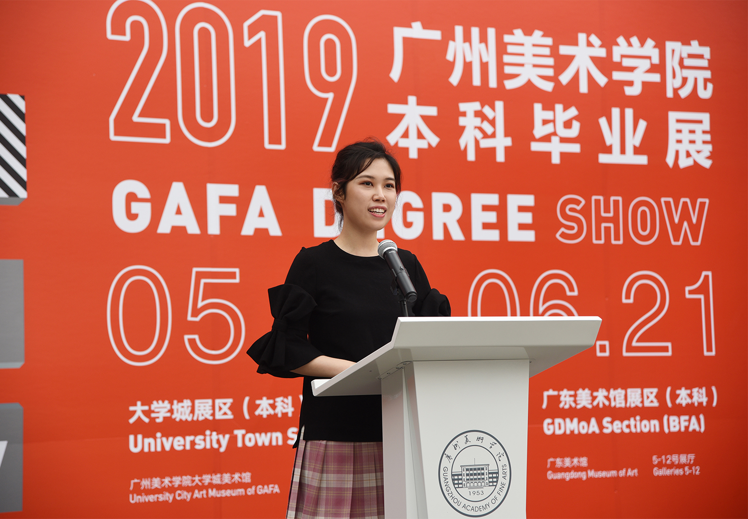 武家旭在发言中表达了对母校、老师、父母、同窗们的感激之情。她表示,毕业作品凝聚了同学们的思索和创意、老师们的教诲和期待,是同学们夜以继日将想法付诸实践的成果。在母校的每一个瞬间、每一段回忆都值得铭记回忆,她将继续坚守梦想,勇往直前,继承广美精神,为母校的旗帜增辉添彩。