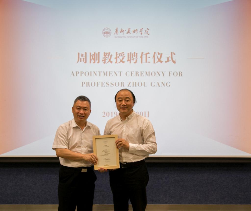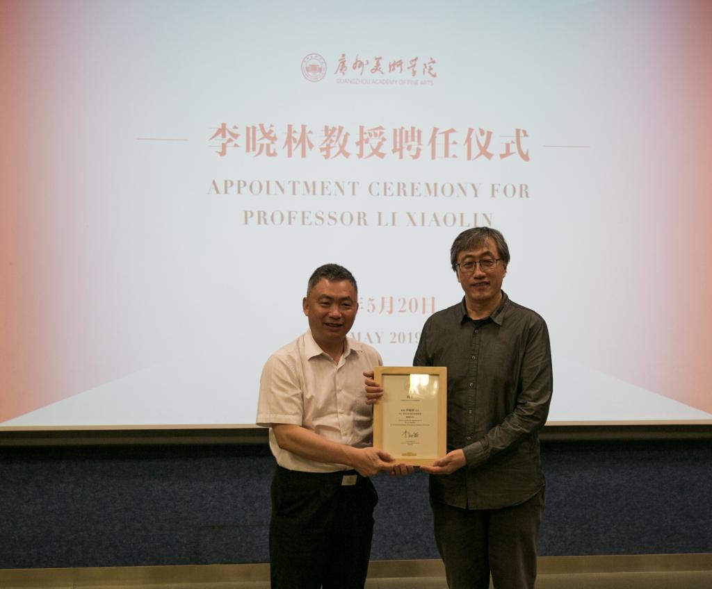 学校党委书记谢昌晶、院长李劲堃、副院长范勃,学校相关职能部门、绘画艺术学院的负责人,绘画艺术学院师生代表共同出席了聘任仪式。谢昌晶分别为李晓林、周刚颁发客座教授聘书,李劲堃代表学校致辞,范勃主持仪式。