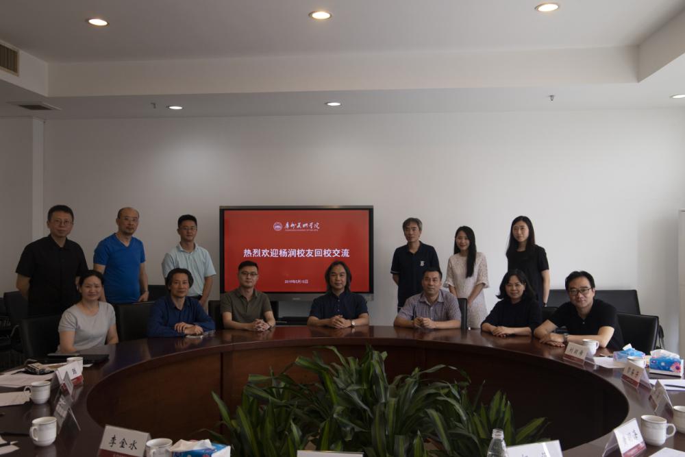 5月15日上午,我校2003届优秀校友、联想集团设计总监杨润应邀回校交流。学校副院长蔡拥华,党政办主任李金水、教育发展与校友事务办公室主任黄明海、研究生学院副院长侯旻翡、科研创作处副处长李勇、实验教学中心主任肖勇、工业设计学院副院长彭圣芳、建筑艺术设计学院副院长许牧川、教育发展与校友事务办公室副主任陈聪及相关人员出席座谈会。会议由黄明海主持。