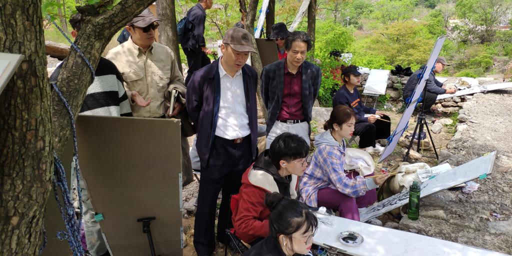 9日,谢昌晶在河南省新乡市郭亮村教学实践基地听取了中国画学院的实践教学工作汇报,观摩师生下乡写生课,并在学生作业讲评会上对本次下乡教学实践活动的成效表示充分的肯定。他指出,太行山革命圣地是爱国主义教育的好地方,希望同学们要学习太行精神、愚公移山精神,增强文化自信,不畏艰苦,努力学习,继承和弘扬优秀的中华传统文化,用艺术谱写祖国的壮美河山。
