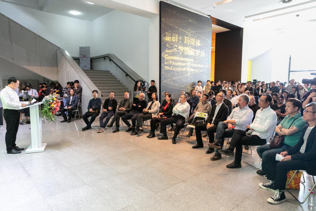 邱志杰高度评价了跨媒体艺术学院在教学理念和创作实验的各项尝试,期待与跨媒体艺术学院展开各项学术交流,并在开幕式当晚作了“科技艺术的概念与教学框架”的主题演讲。