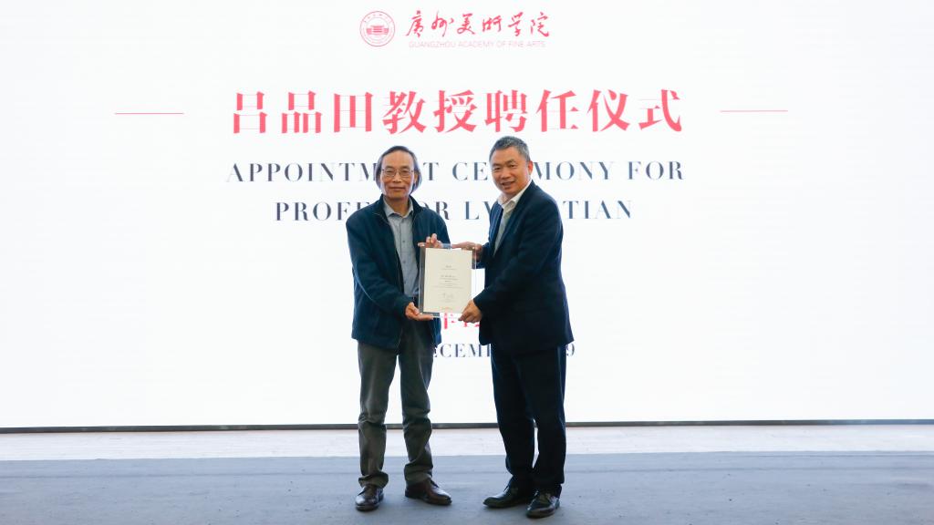 李劲堃在致辞中对吕品田教授的到来表示热烈欢迎,他指出,吕教授长期从事美术理论研究和美术创作,尤其重视手工艺、民间美术和非物质文化遗产研究,并作为专家参与国家非物质文化遗产保护工作实践,曾获中宣部“五个一工程”奖、国家社科基金艺术学科一等奖、中国艺术研究院学术成果特别奖、中华优秀出版物图书提名奖、“三个一百”原创图书出版工程奖、中国美术奖·理论评论奖、中国文联文艺评论一等奖等多个学术奖项,学术视野开阔、治学严谨、学术成就丰硕,相信他的到来将对我校传承活化岭南工艺产生积极的推动作用。学校希望吕教授充分发挥其个人学术影响力,整合学术资源,为扎实推进我校的学科与专业发展提供切实的帮助,作出更大的贡献。