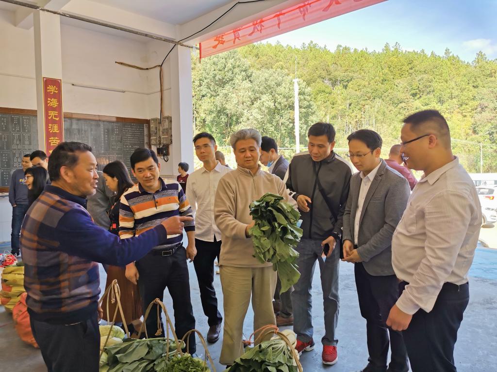 黄启明一行首先参加了“消费助扶贫、浓浓广美情”农产品现场销售活动,详细询问了贫困户农产品的产销情况,踊跃购买各类农产品,积极参与消费扶贫活动,现场的农产品很快就销售一空。黄启明指出,消费扶贫是巩固脱贫成果的重要举措之一,要重视消费扶贫在决战决胜脱贫攻坚的重要作用,拓宽扶贫产品销售渠道,带动贫困户增产增收。