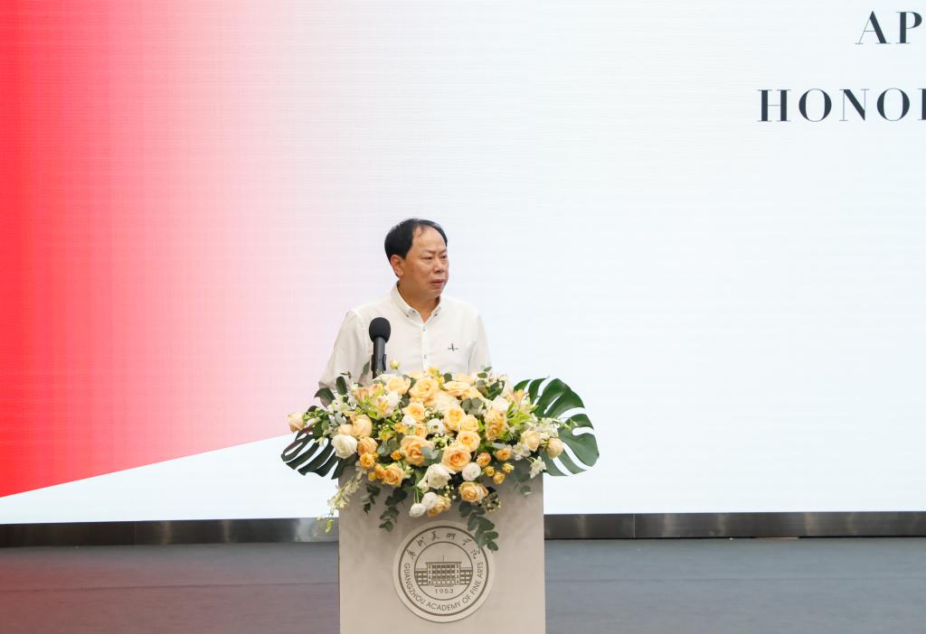 李劲堃在致辞中对何镜堂院士的到来表示热烈的欢迎。他表示,何院士是中国建筑设计专业的一面旗帜,他提出的“两观三性”理论和团队设计的优秀作品,在建筑学科、城市文化等领域影响深广;他指导的学生已成为我国建筑设计领域的翘楚和中坚力量。希望以何院士丰富的教学经验、学术智慧和社会阅历,共同推动岭南建筑界和艺术界的广泛和深度合作,以联合发起“粤港澳大湾区建筑与城市艺术创新奖”为契机,推进岭南创作的跨界合作与全面繁荣。他相信何院士将充分发挥自身的学术资源和学术影响力,推动我校发挥粤港澳大湾区优势和文化资源共享,共同搭建广阔的发展平台,在学科建设、人才培养、科研创作、服务社会等方面不断取得新突破。