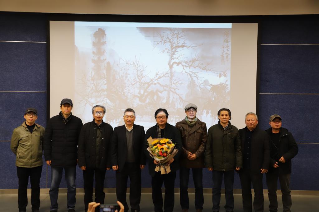 张教授接着讲述了历代诗画传统,特别是两宋文人画兴起后,文人更为崇尚诗画合一,中国山水画在和诗歌“境界”追求上有许多共通之处,比如写其生气,传其神态,注重内在心灵的表现等。他通过引用王国维《人间词话》中“有有我之境,有无我之境”,进一步阐明中国山水画的诗性品格:境界的高低、气韵的生动、情感的表达和笔墨紧紧相连,透过笔墨展现画家的审美、思想、气质、学养、性情等。张教授特别指出,当代中国画创作普遍存在“对传统研究不深、表达过于直白”等两大缺陷,并分析了传统师徒制和学院制学习的优缺点。