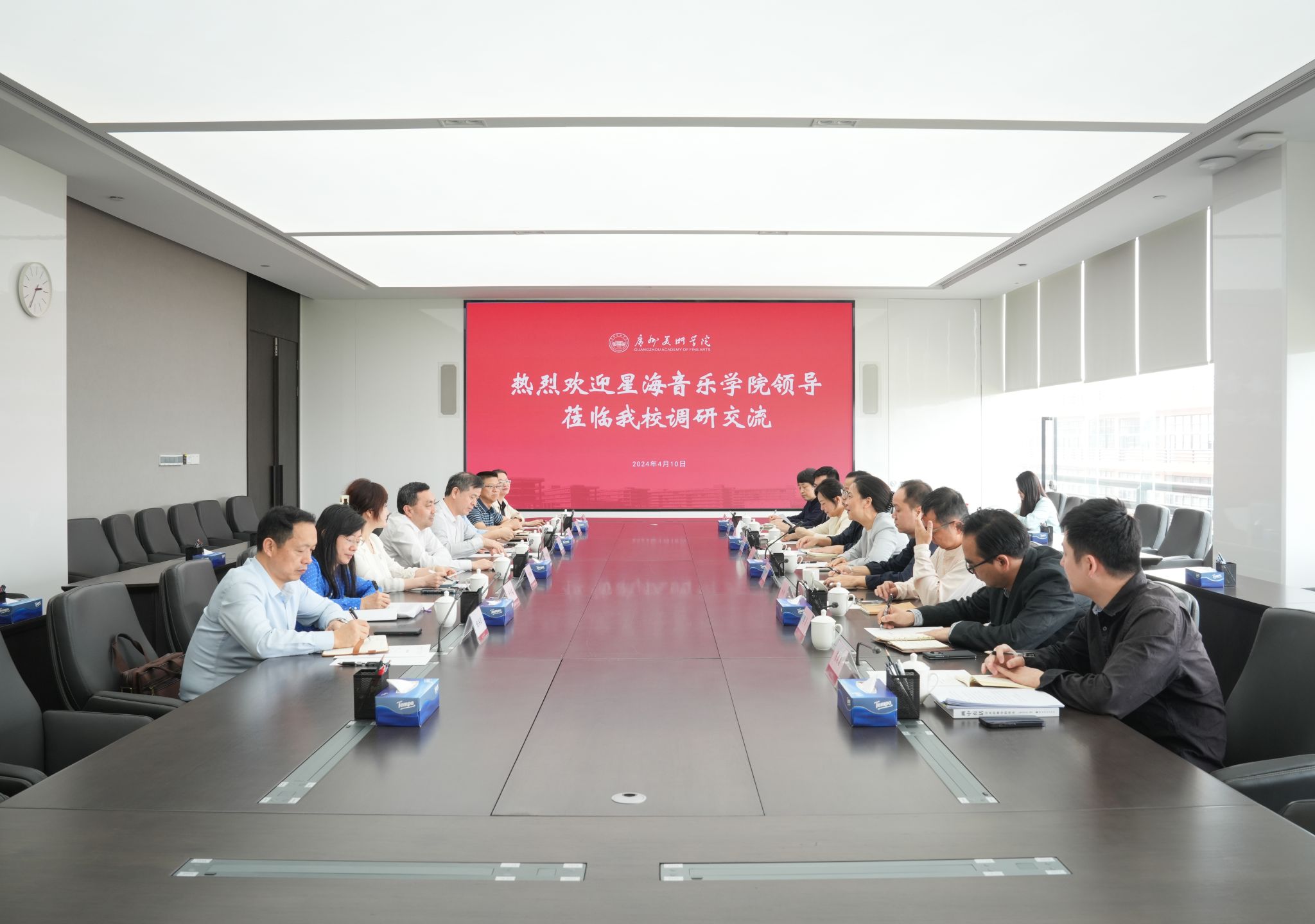 4月10日下午,星海音乐学院党委书记邓国安一行来我校调研,就党建引领、人事制度改革、人才培养、科研激励、学生工作、博士点建设等方面交流座谈。学校党委书记林蓝,党政办公室、党委组织部、党委宣传部、人事处、科研创作处、研究生处等部门负责人参加座谈。