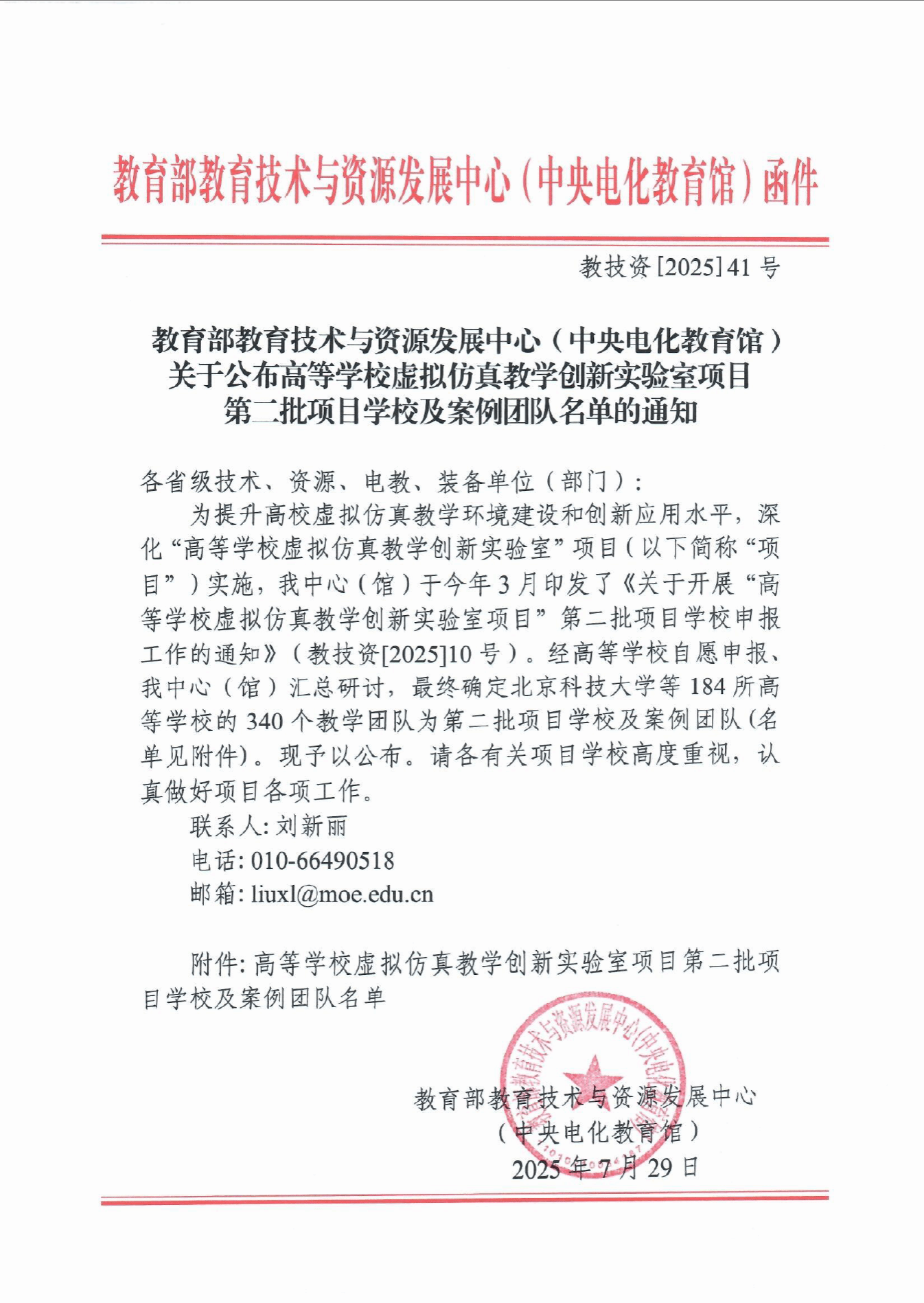 根据《教育部教育技术与资源发展中心(中央电化教育馆)关于公布高等学校虚拟仿真教学创新实验室项目第二批项目学校及案例团队名单的通知》,此次共184所高校的340个项目获批立项。2024年新澳门原料大全两个实验室项目成功入选,充分彰显了学校在虚拟仿真教学创新领域的扎实功底与综合实力。