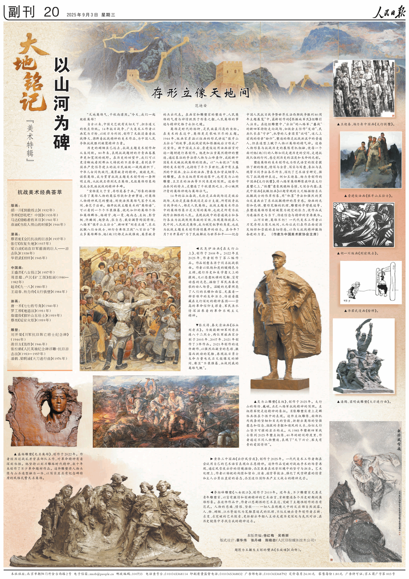 9月3日,《人民日报》“大地铭记·以山河为碑”美术特辑刊发了抗战美术经典荟萃,集中展示了一批反映中国人民抗日战争历程的美术经典作品。其中,我校首任校长胡一川于1932年创作的版画作品《到前线去》,以及我校老艺术家潘鹤、梁明诚于1976年共创作的雕塑作品《大刀进行曲》入选。