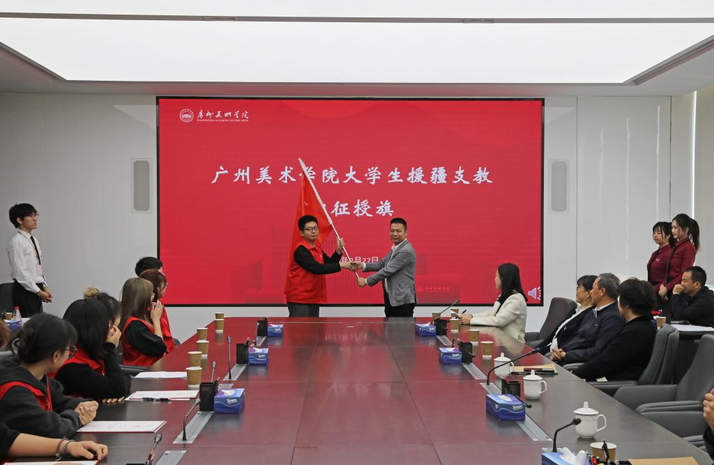 宋光智为2023年春季援疆支教服务队授旗,并对援疆支教工作提出具体要求。