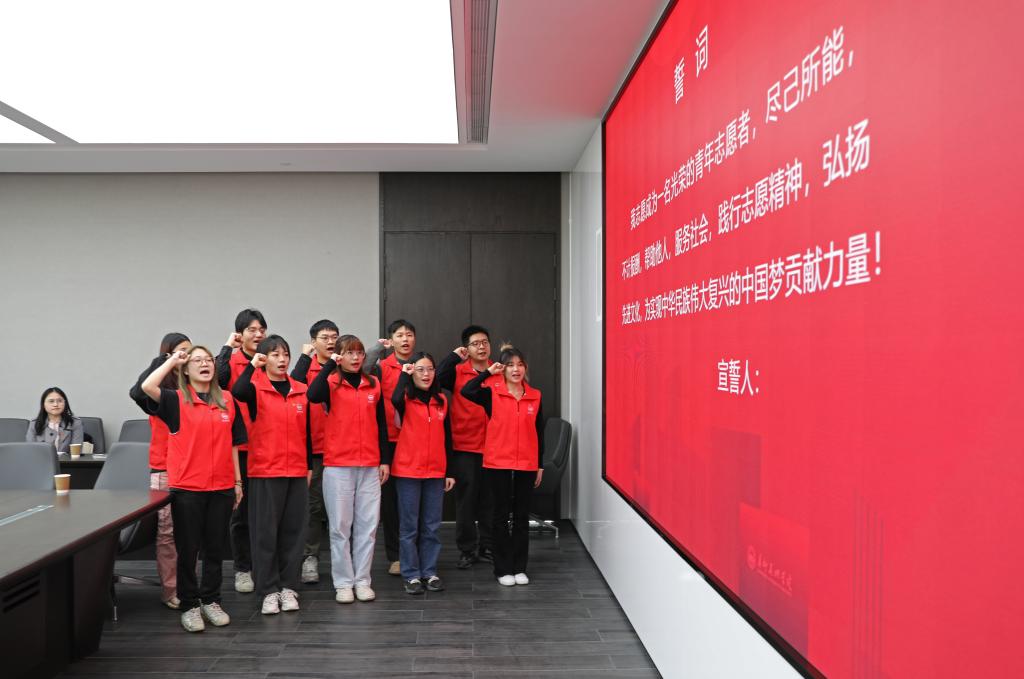 “我志愿成为一名光荣的青年志愿者……”随着铿锵的誓言,全体援疆志愿者举起右拳,郑重宣誓。