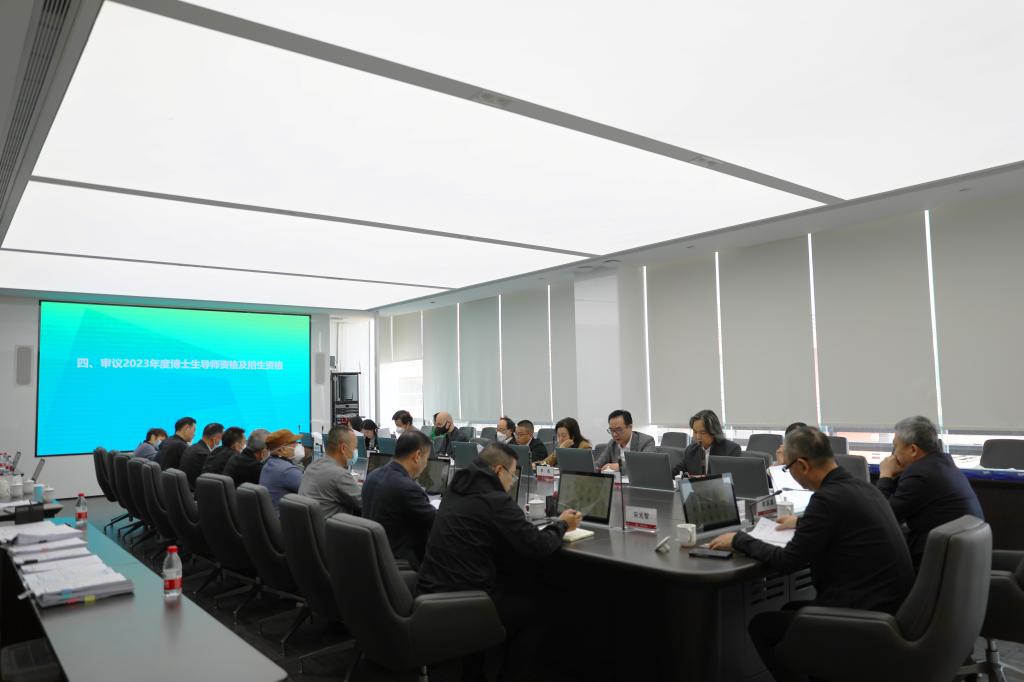 本次会议宣读了2023年我校学位评定委员会组成人员名单,审议了我校2022年高等教育自学考试第二批毕业生学位授予名单、2023年博士生导师资格和招生资格候选人名单等相关事项,并对2022年广东省抽检硕士学位论文评议结果进行了通报。