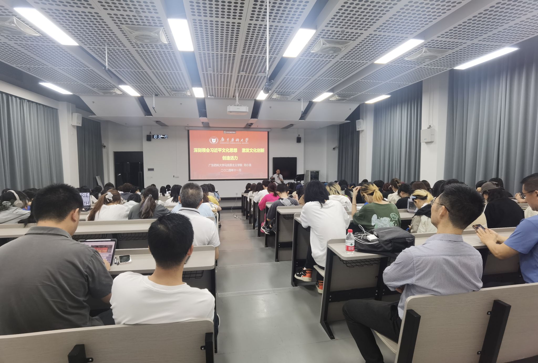 为深入学习贯彻落实党的二十届三中全会精神、全面把握习近平文化思想的丰富内涵和实践要求,马克思主义学院于11月13日晚在大学城校区J栋202举办专题讲座。广东药科大学党委宣传部部长、马克思主义学院院长刘小龙教授应邀开讲。讲座由马克思主义学院院长徐平华主持,马克思主义学院教师、学科思政硕士研究生以及2023级本科生聆听了讲座。