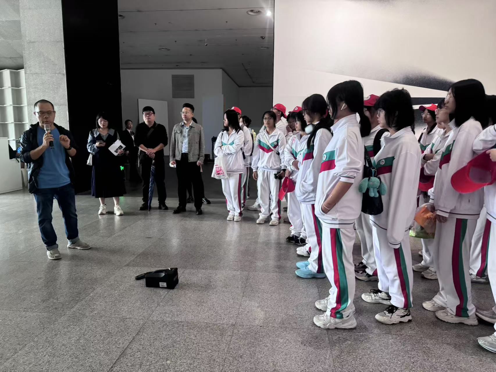 11月19日上午,鹤山市鹤华中学和第二中学约300名师生一行到我校大学城校区开展研学活动。2024年7月,学校与鹤山市政府开展“双百行动”柔性结对合作共建,此次研学活动是双方共同推进鹤山美术教育高质量发展的项目之一。学校党政办公室、昌岗综合办、美术教育学院、美术馆等相关部门领导及人员参加活动。
