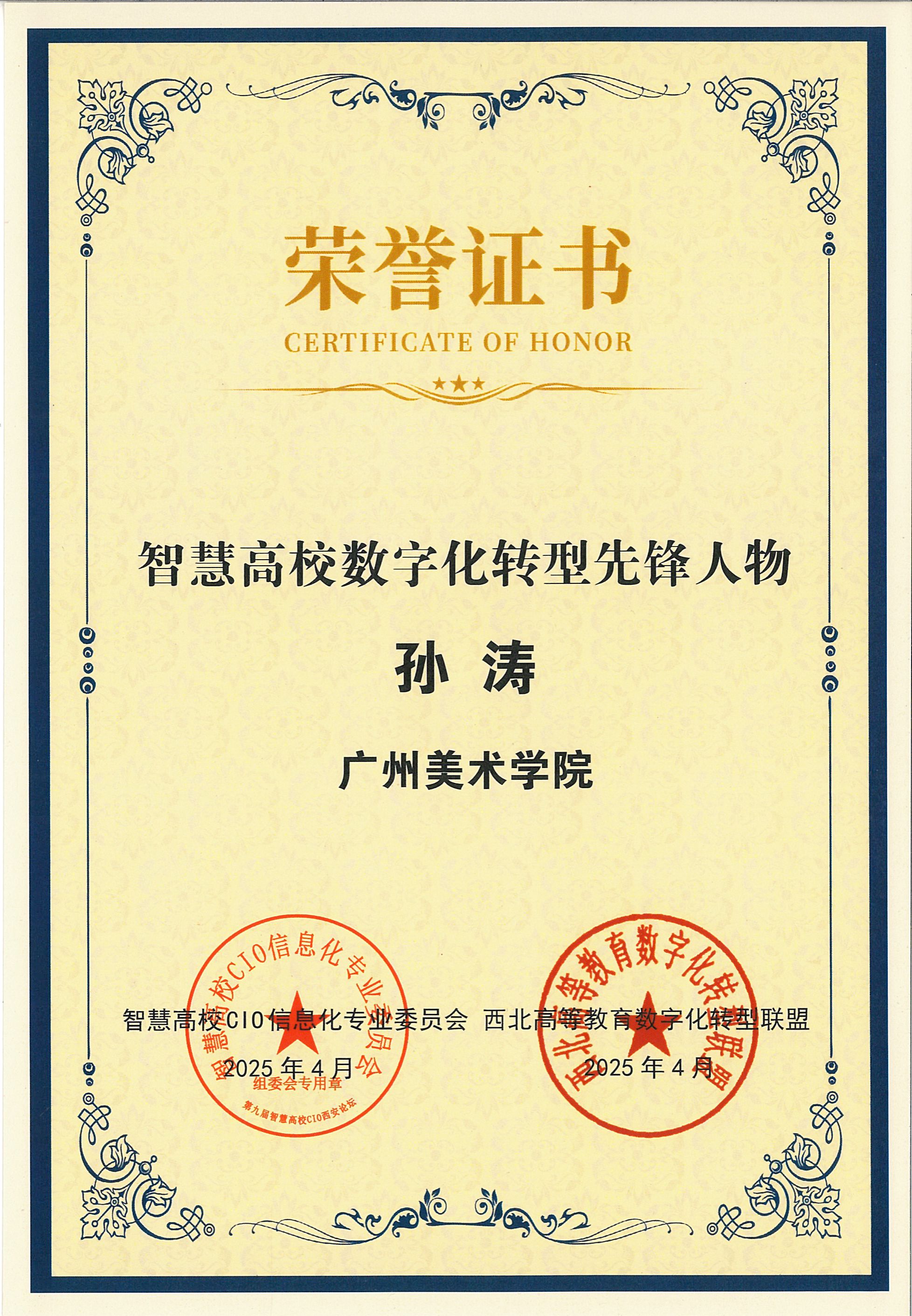 以“AI赋能数字教育创新与重构”为主题的第九届智慧高校CIO西安论坛近日举办,论坛由智慧高校CIO信息化专业委员会、eMOOC联盟和西北高等教育数字化转型联盟联合主办,由上海市高等教育学会、江西省高校教育信息化学会等协办。论坛具体围绕智慧校园、智慧教学、智慧管理、智慧科研等议题展开深入探讨与交流。论坛期间,我校凭借智慧校园实践创新建设成果,荣获“智慧校园-示范高校”,孙涛同志获“智慧高校数字化转型先锋人物”。