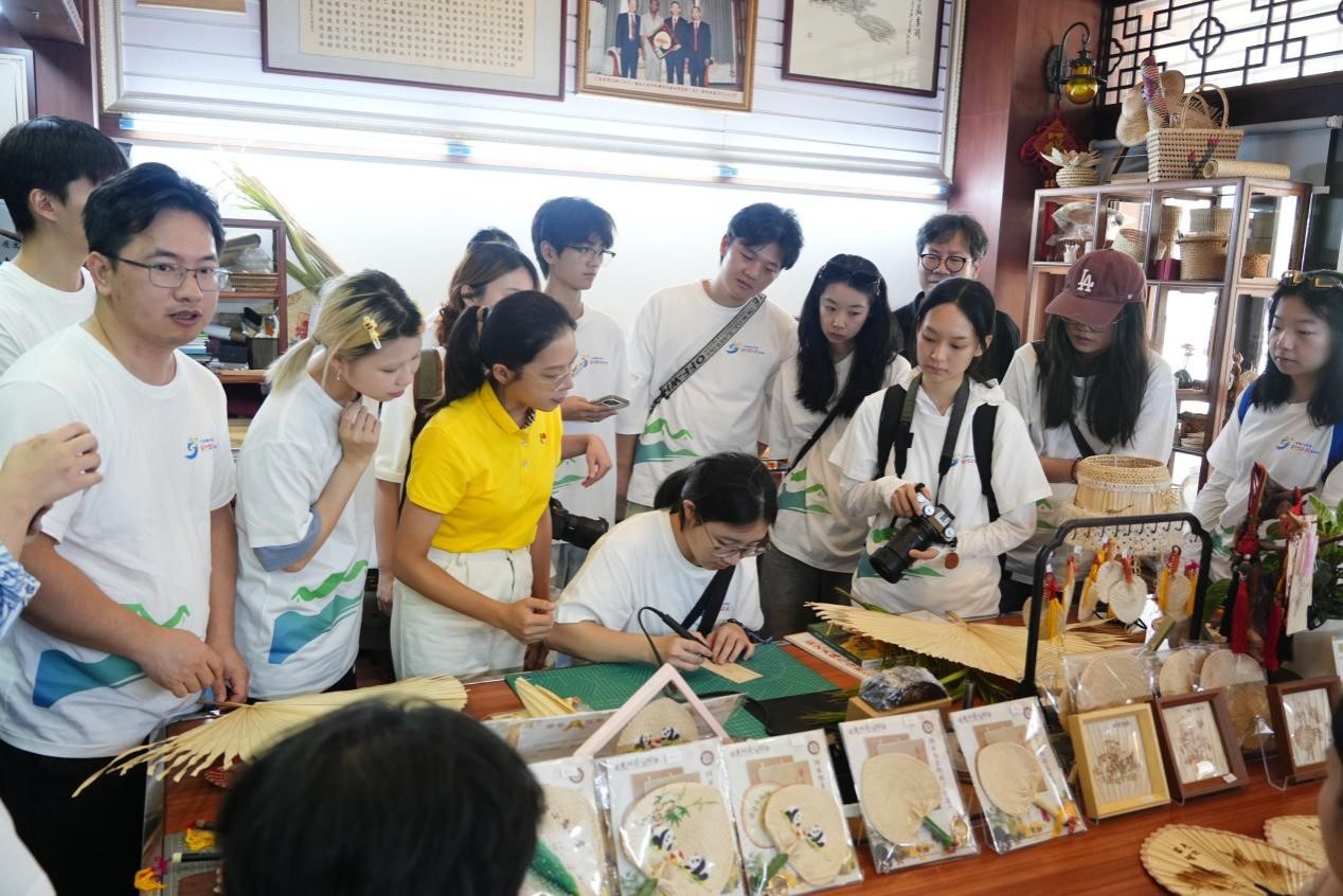 在惠林葵艺馆,大家聚焦于新会葵艺这一传统手工艺。新会葵艺以其精湛的编织技艺和独特的艺术风格闻名,是国家级非物质文化遗产。葵艺馆工作人员向师生详细介绍了这门技艺的历史与工艺,学生们也在现场观摩了葵艺制作过程,对传统工艺的材料选择、技艺细节及艺术表现形式有了更直观的认识。
