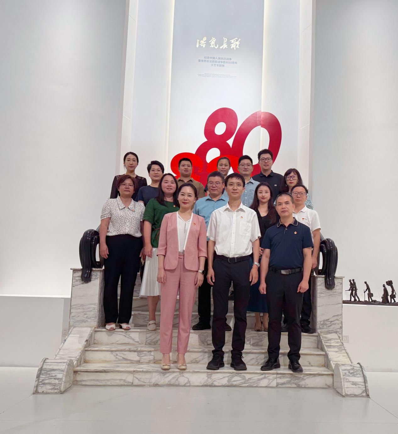 随后,同志们共同前往我校岭南画派纪念馆参观了“浩气长歌——纪念中国人民抗日战争暨世界反法西斯战争胜利80周年文艺专题展”。展览以“艺术救国”为主题,汇聚文学、音乐、美术、电影、戏剧、摄影等门类的大量原作与历史文献,全景式地回顾了广东文艺工作者以艺术为武器的抗战历程。他们以笔为戈,以画为矛,以歌为号,或直面暴行揭露黑暗,或讴歌英雄鼓舞士气,或唤醒大众凝聚民心,在民族存亡之际构筑起强大的精神防线,展现了文艺战线战士的独特贡献与家国担当。在一件件饱含历史厚重感与艺术感染力的展品前,大家驻足凝视,仔细聆听讲解,无不为抗战军民展现出的巨大勇气、智慧和牺牲精神所深深震撼。