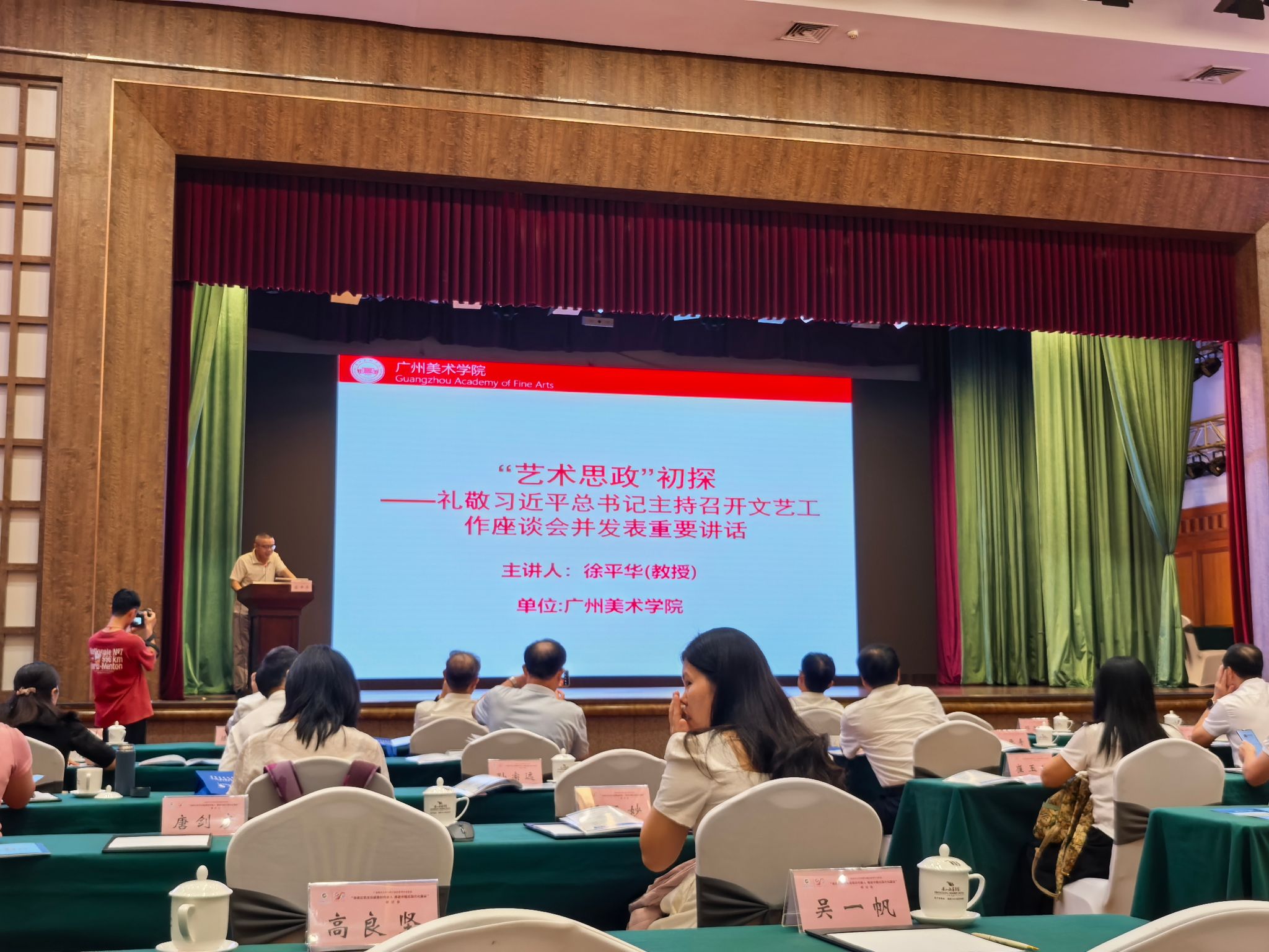 马克思主义学院院长徐平华作了“艺术思政初探——基于《在文艺工作座谈会上的讲话》”主题报告。报告解析了《在文艺工作座谈会上的讲话》的重要内容、主要范畴、时代价值,结合艺术院校的具体实际,提出“艺术思政”观点,引发学者的思考和讨论。马克思主义学院2024级研究生匡瑞明、2025级研究生黄剑标参加马克思主义理论研究生论坛,分别分享了“画说伟大抗战精神——以广美马院研究生艺术思政实践为例”“画说伟大抗战精神——以版画《军民合作》为例”的研究心得。广州大学马克思主义学院副院长吴阳松教授对两位研究生的汇报给予点评,认为选题新颖、框架清晰、颇具特色,突显了美术院校研究生较好的问题意识。