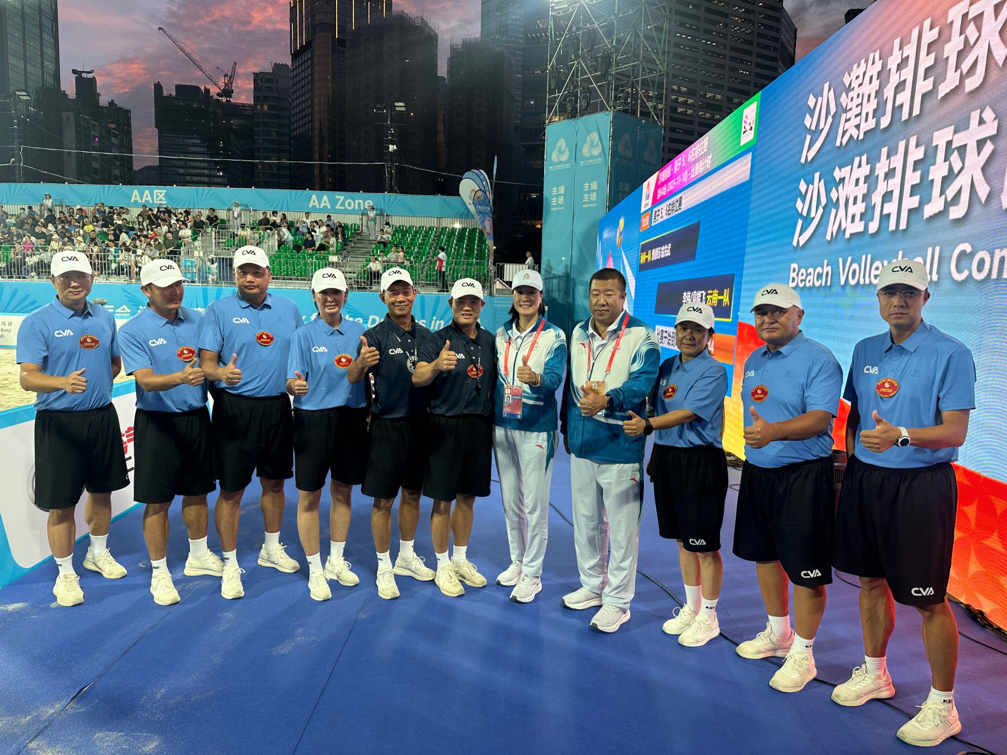 申向红老师作为沙滩排球国际级裁判、中国排协沙滩排球裁委会委员,担任沙滩排球决赛管理委员会仲裁委员。自2001年第九届全运会起,申向红老师已连续参与七届全运会裁判工作。在本届赛事中,她凭借严谨的工作作风与专业的裁判素养,带领执哨裁判团队保障赛事公平,传递了团结协作、尊重规则的体育精神。