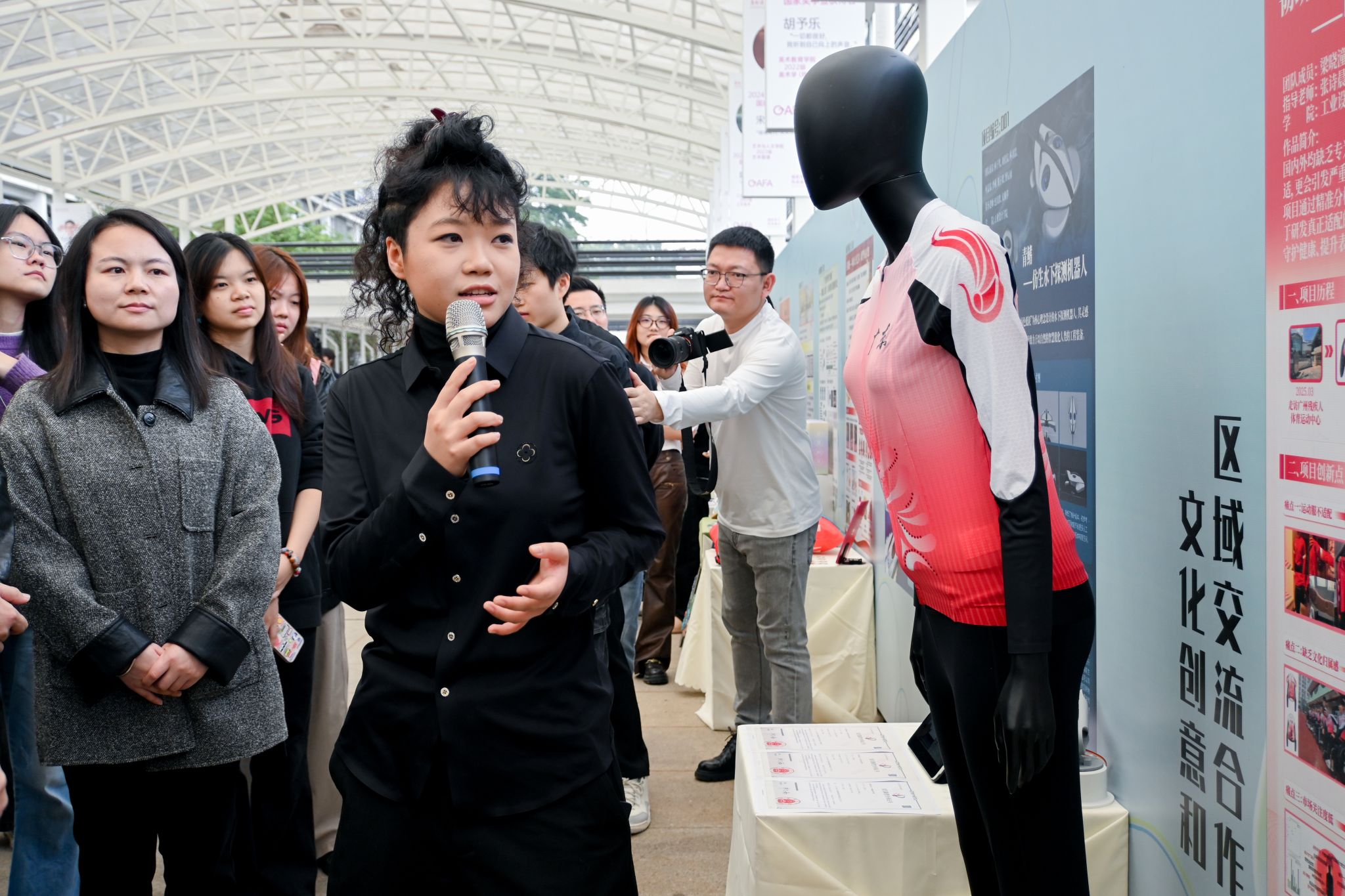 雕塑与公共艺术学院2024级公共艺术专业、“瓷话岭南”团队负责人李晓聪表示:“感谢学校搭建了这样一个宝贵的平台,让我能有机会与其他创业团队展开学习交流。参与挑战杯的经历,让我们团队更加坚定了以文化创新去服务社会与产业发展的初心。”