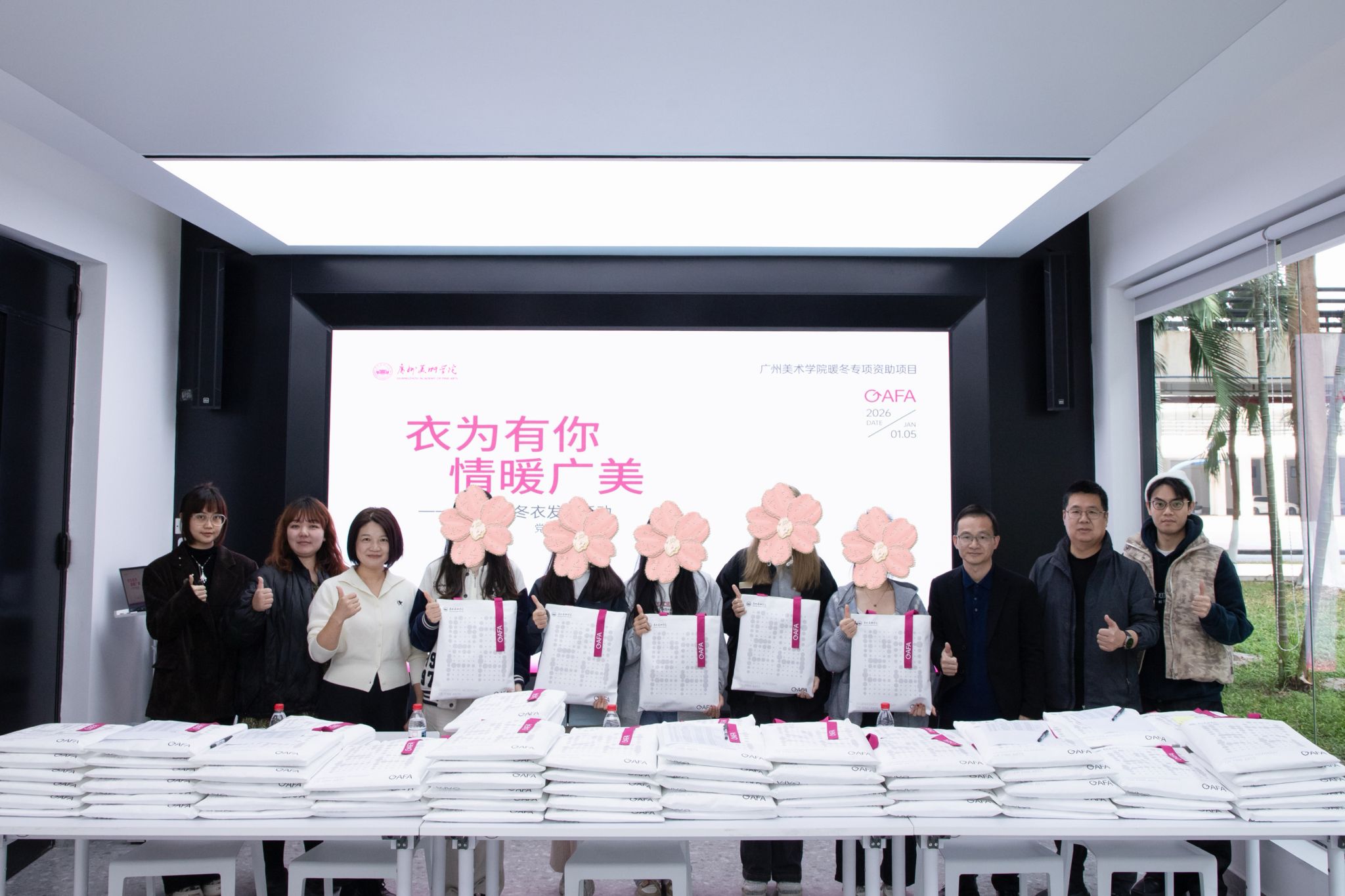 “这件冬衣挺好看的,印有GAFA的Logo,颜色也是我喜欢的,小寒这天穿上它,感觉特别温暖”。一位领到冬衣的学生分享道。另一位同学说,“学校让我们在寒冷的冬天也能感受到家的温暖,这份情谊,我们将永远铭记”。有些同学则给辅导员发去感谢信息,感恩老师和学校。