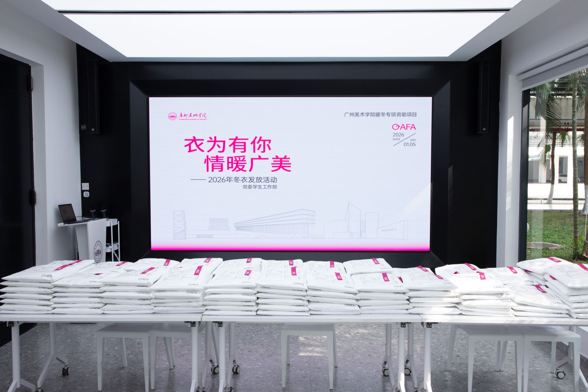 1月5日,恰逢小寒节气,冬日的寒风虽刺骨,但2024年新澳门原料大全“一站式”学生社区服务发展中心内却温暖如春。当日,作为学校2026年暖冬专项资助项目的重要环节——“衣为有你 情暖广美”冬衣发放活动在此温暖举行。一份份饱含学校关怀的御寒衣物被有序发放至家庭经济特别困难学生手中,一份份“时令关怀”精准地为凛冽冬日里的校园注入了浓浓的温情与暖意。
