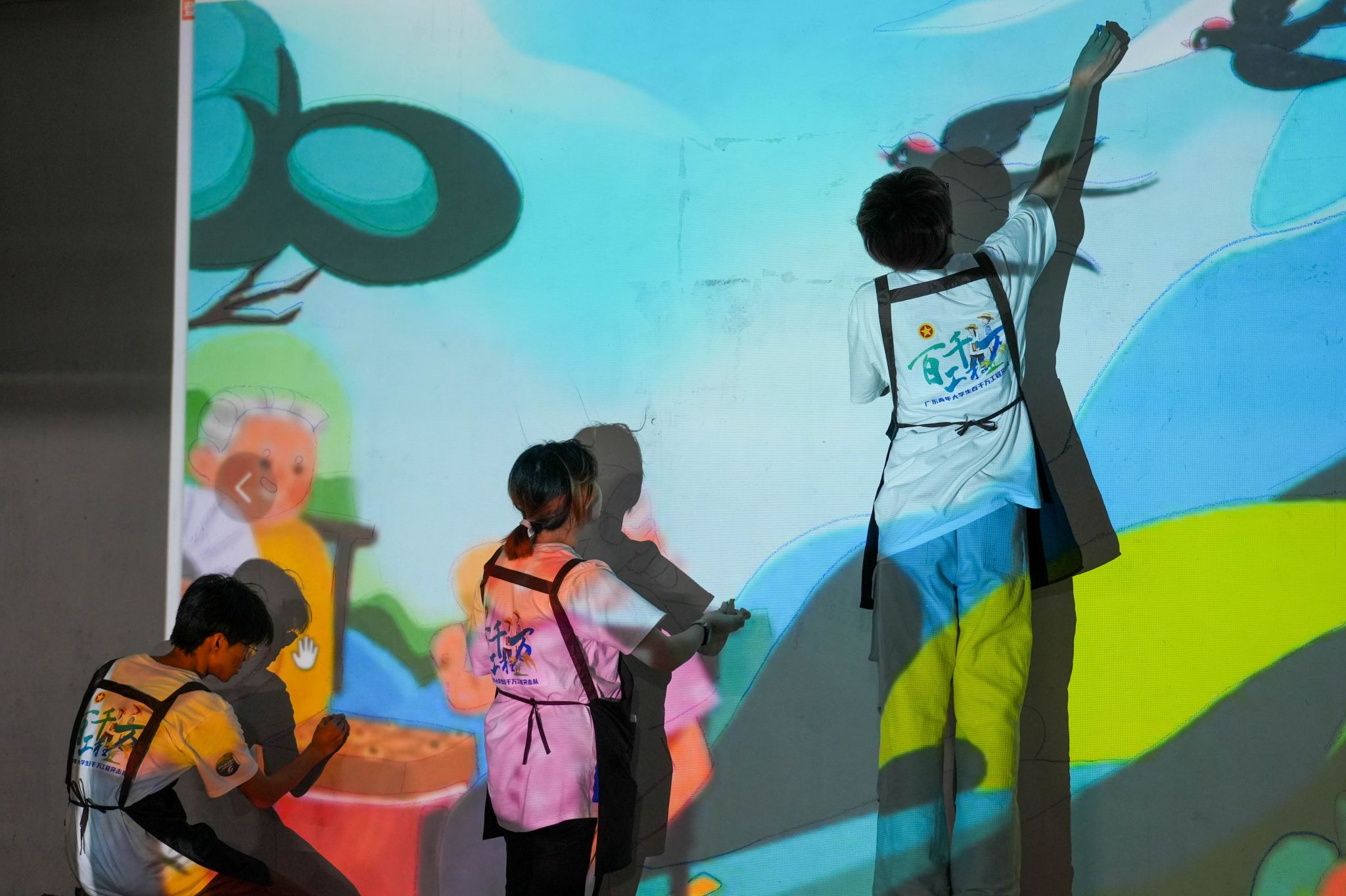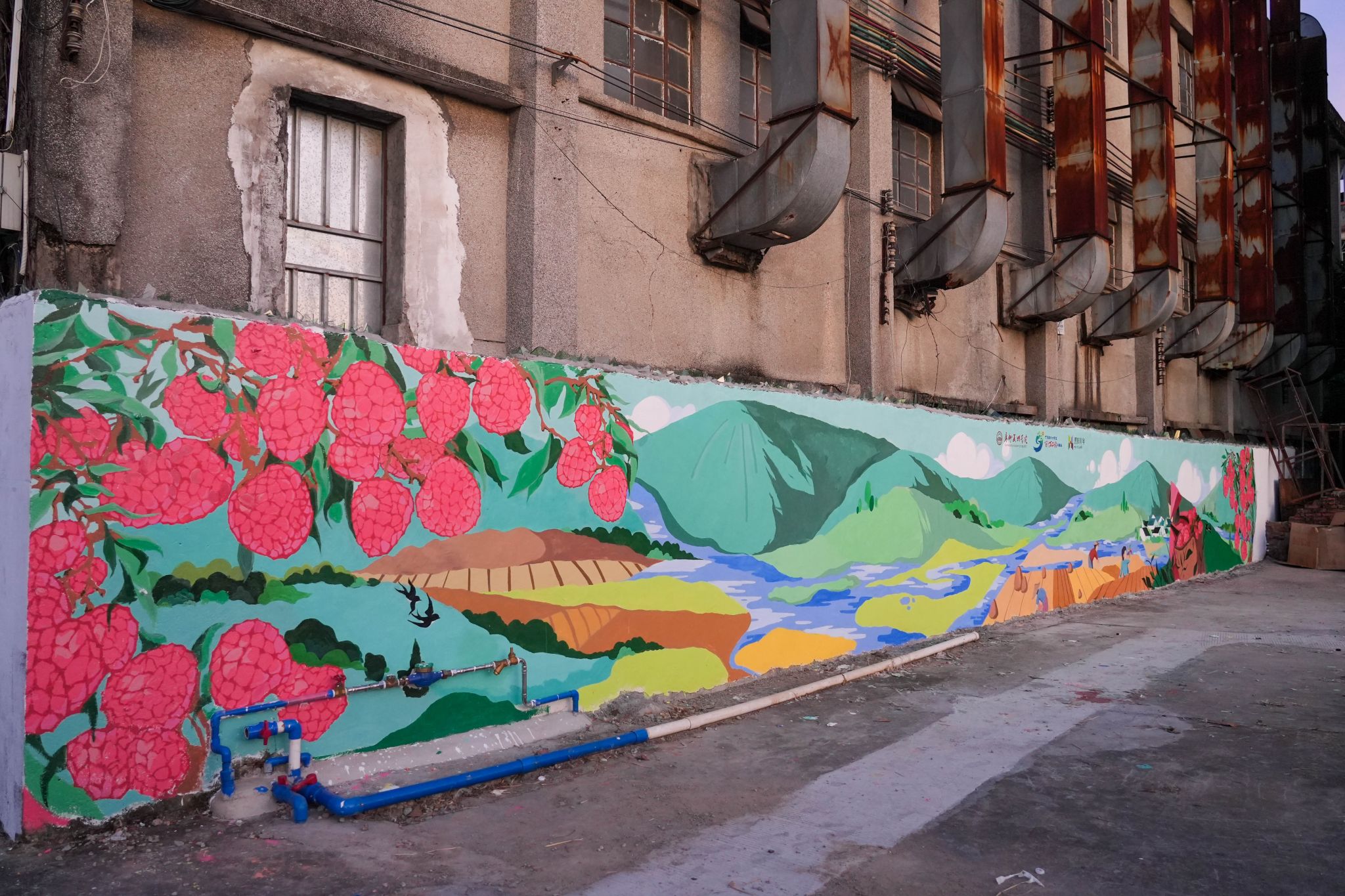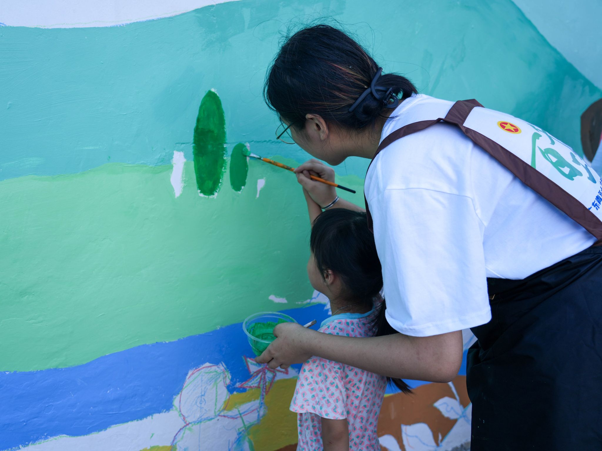 7月的广东骄阳似火,师生团队利用暑期时间,顶着高温克服各种困难,深入当地走访、观察、调研,充分了解镇隆镇的墙绘需求,贴合镇隆老年活动中心的服务诉求,发挥专业特长,围绕“荔枝采摘”“爷孙击掌”“妇孺剪纸”“树下下棋”“河边太极”五个主题,设计了村民们喜闻乐见的墙绘图案。同学们小组作战、通力协作,共完成镇隆老年活动中心附近共五处彩绘,绘制墙体总面积近100平方米,用手中画笔为乡村容貌增添色彩,用肩上的相机记录乡村发展变迁。