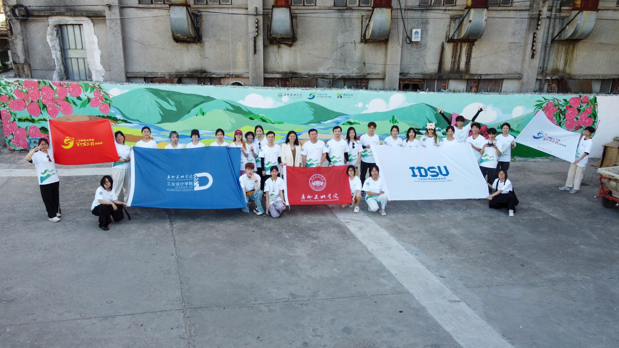为深入开展学习贯彻习近平新时代中国特色社会主义思想主题教育,深入学习宣传贯彻党的二十大精神,自共青团广东省委员会发动广东青年大学生“百千万工程”突击队行动项目以来,广美团队积极响应,主动在平台上与当地洽接,并与团惠阳区委在第一批次结对。7月9日,广美工业设计学院“绿美惠阳”乡村振兴艺术墙绘实践团一行走进惠州市惠阳区镇隆镇,开展暑期“三下乡”社会实践活动暨广东青年大学生“百千万工程”突击队行动。本次实践团有教师3人、学生26人,其中师生党员6人、学生团员17人。