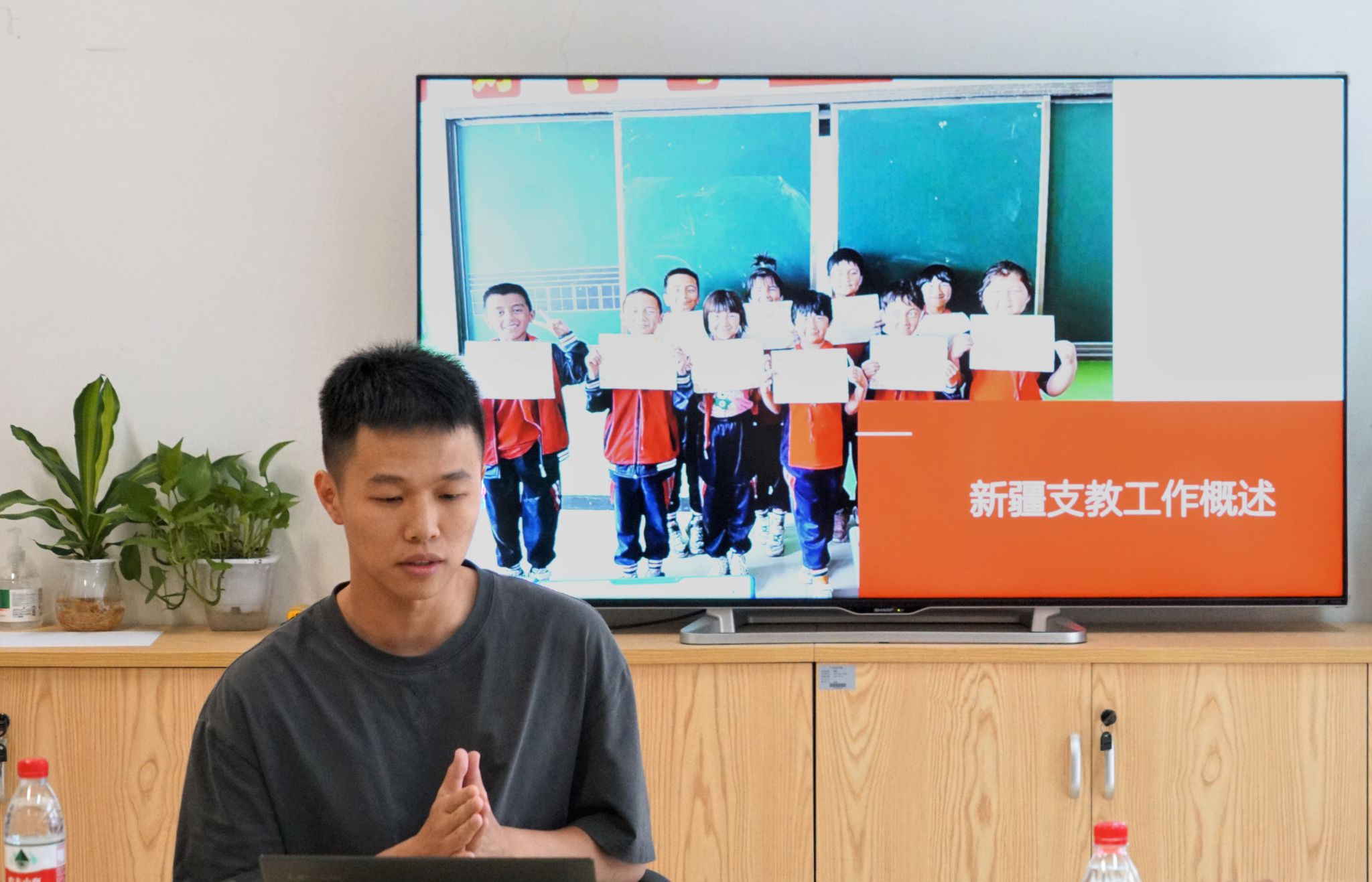 陈泽龙介绍支教地新疆喀什区伽师县第四小学的情况,讲述了教学过程中面临的状况,分享了他们在教学方式上尝试创新,介绍了课外工作情况,并展示了他与孩子们愉快相处的点点滴滴。陈泽龙表示,通过这次活动更加深刻理解国家西部开发和西部计划支教的重大意义,这是他无悔的青春选择。