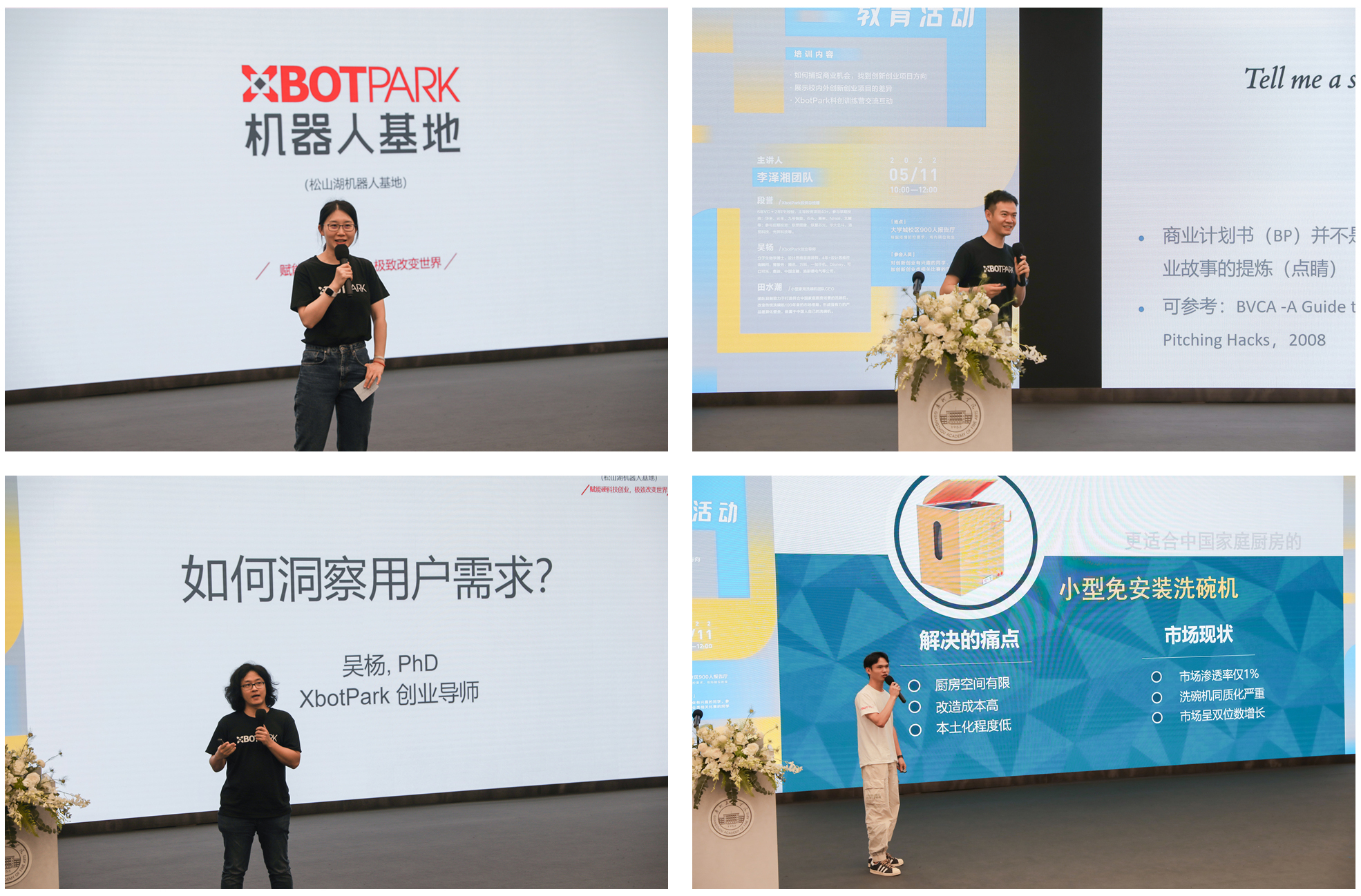 本次讲座由东莞松山湖机器人基地XbotPark李泽湘团队成员主讲。基地负责人杨溪介绍了松山湖机器人基地XbotPart和近期准备举办的科创训练营整体情况,希望有更多广美同学参与到创新创业活动中。讲座第一讲由XbotPark投资总经理段誉主讲,他结合自身项目投资经历,并通过案例对比,分享了如何写好商业计划书,如何展现一个好项目和讲好“故事”的心得体会。第二讲由基地创业导师吴杨主讲“如何洞察用户需求”,他从用户需求角度介绍了设计思维在整个创业项目中的重要性,并和同学们进行互动,启发大家如何寻找商业机会、创造方案。最后一讲由基地孵化出的项目团队CEO田水潮主讲,他介绍了自己从一名在校大学生成长为创业者的心路历程,鼓励同学们大胆尝试、勇于实践。