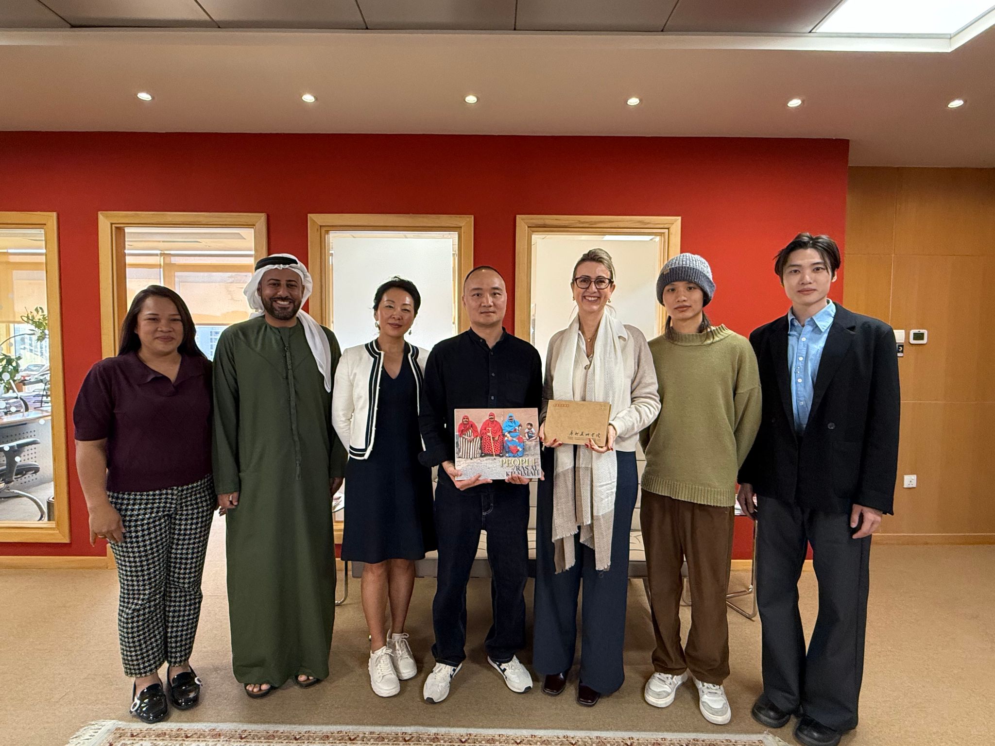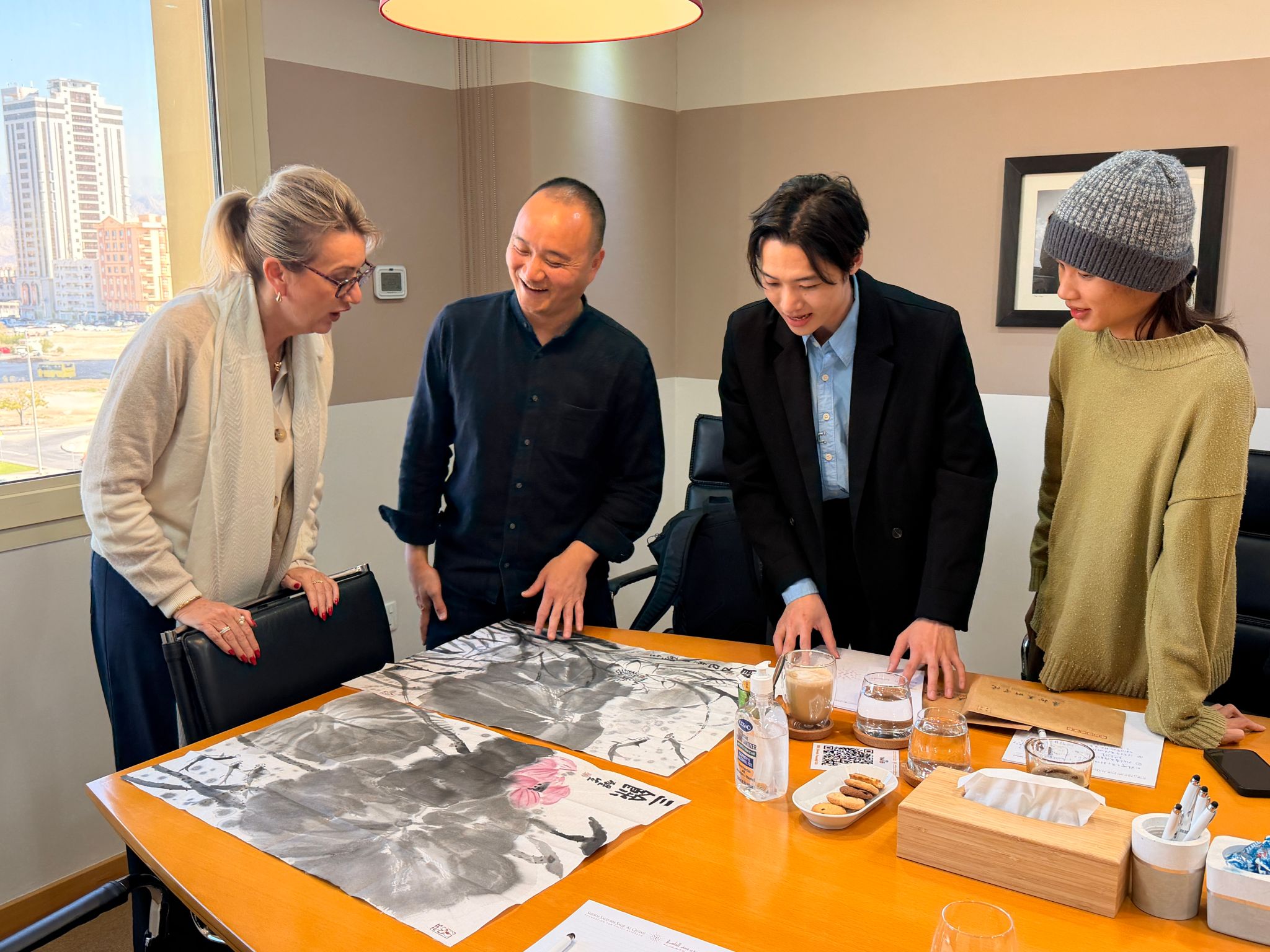 同时,广美教师代表、中国画学院第二工作室主任梁醒生、学生代表梁瀚与此次艺术节主办方哈伊马角谢赫萨欧德·本·萨格尔·卡希米政策研究基金会执行会长及相关人员进行了座谈交流。