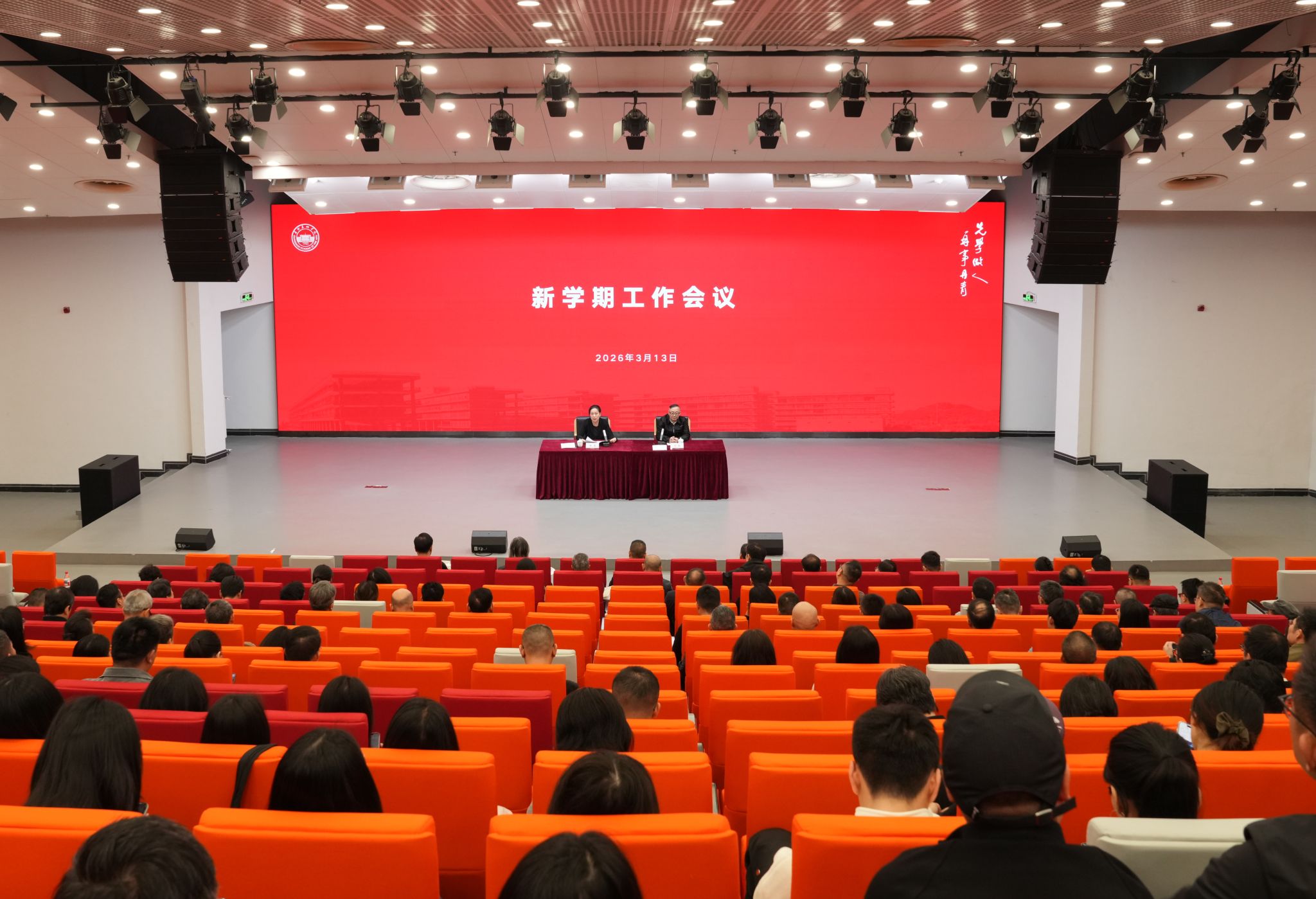 3月13日上午,我校在大学城校区召开新学期工作会议,部署新学期工作。学校党委书记林蓝,院长范勃,党委副书记宋光智,副院长蔡拥华、李金水、李勇,全体中层干部(含聘任制),民主党派代表,各二级学院办公室负责人,全体辅导员及教学秘书,马克思主义学院全体教职工参加会议。会议由林蓝主持。