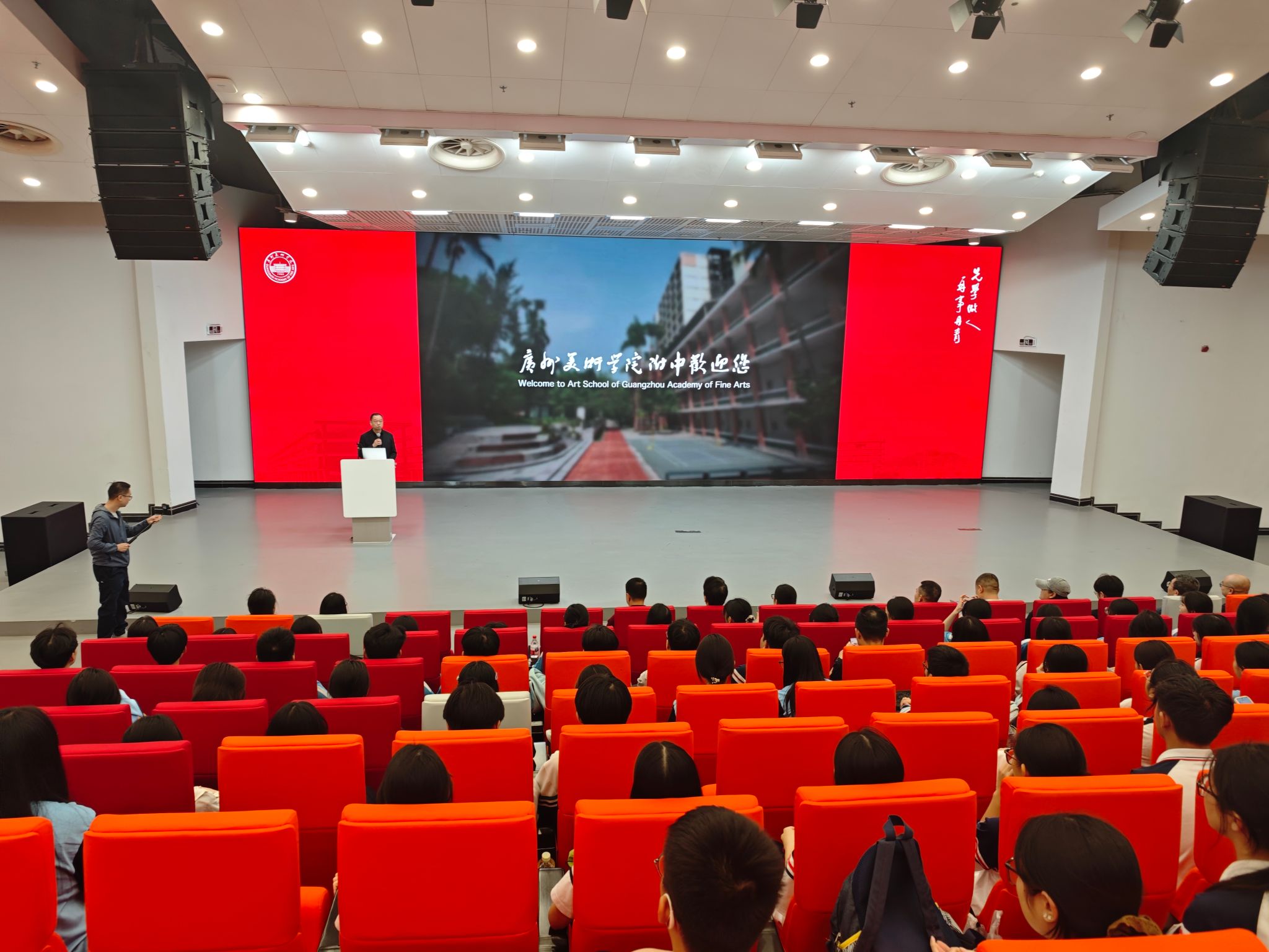 观展结束后,师生们在900座报告厅举行专题交流会。附中校长胡宇教授首先介绍了附中的办学情况,并展示了附中历届优秀学生素描、速写、油画等系列作品。在互动答疑环节,附中、学生工作部老师们分别和学生们提出的绘画技巧、学习方法、艺术生职业发展规划等问题进行交流。最后,胡宇专门针对同学们关心的我校录取、大学生职业发展等问题提出了中肯建议,勉励同学们珍惜学习时光,保持艺术热忱,在艺术道路上不断精进。