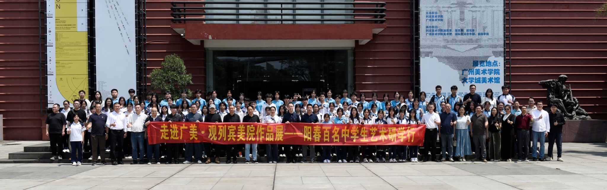 为积极响应省“百千万工程”关于推动城乡协调发展、强化美育浸润赋能的战略要求,推动“双百行动”走深走实,在学校党委和阳春市人民政府的指导支持下,4月1日,阳春市6所城乡中学百余名师生到我校大学城校区开展“走进广美·观列宾美院作品展”艺术研学行活动。我校党政办、附中、“双百行动”驻阳春服务队、驻八甲镇帮镇扶村工作队和阳春市“双百行动”专班、阳春市教育局等部门主要负责同志参加活动。