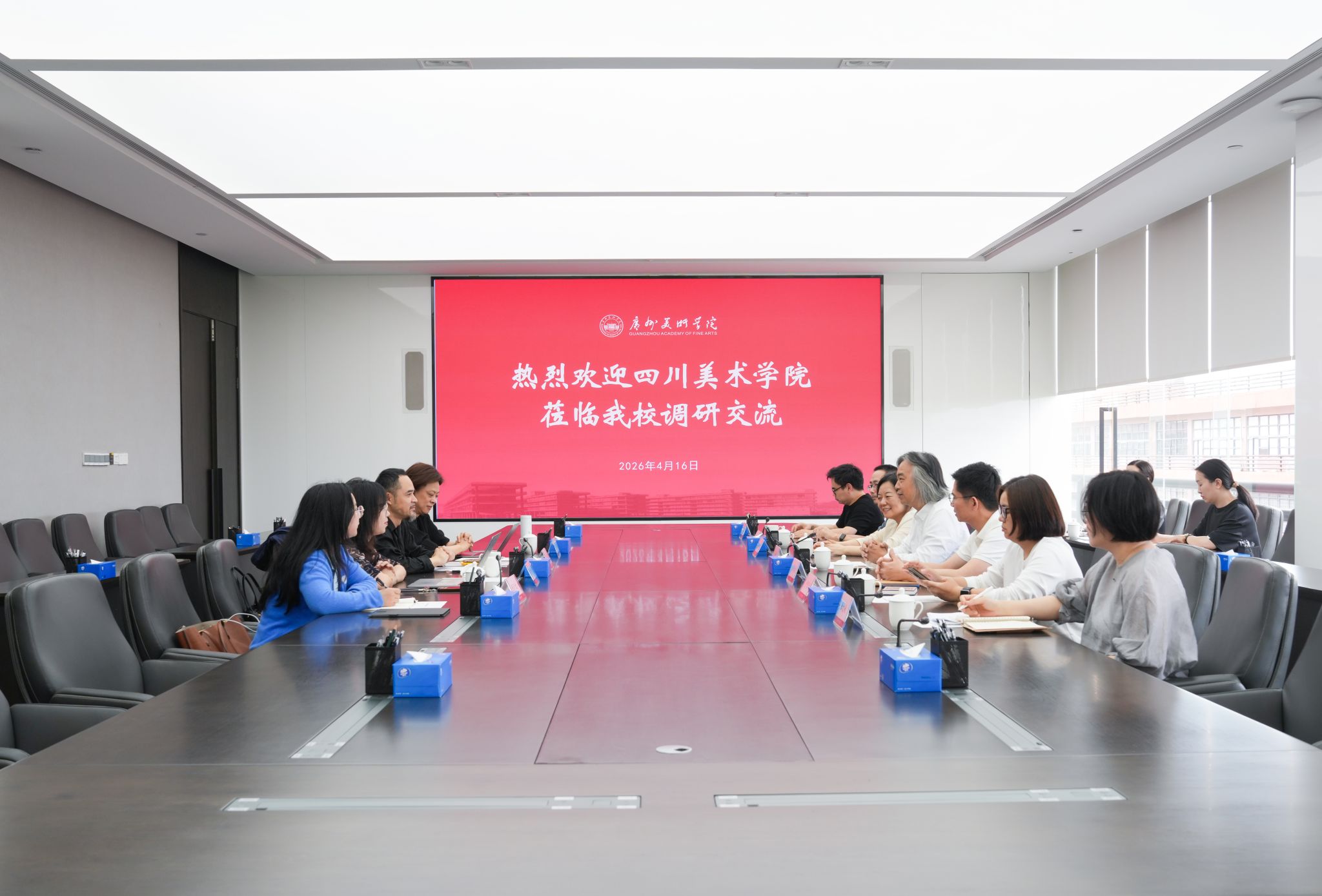 416日下午,四川美术学院副院长韦嘉率领创作科研处一行 4人到我校调研交流。我校副院长蔡拥华主持座谈会,党政办公室、人力资源部科研创作部、发展规划、财务部等相关职能部门负责人参加座谈。