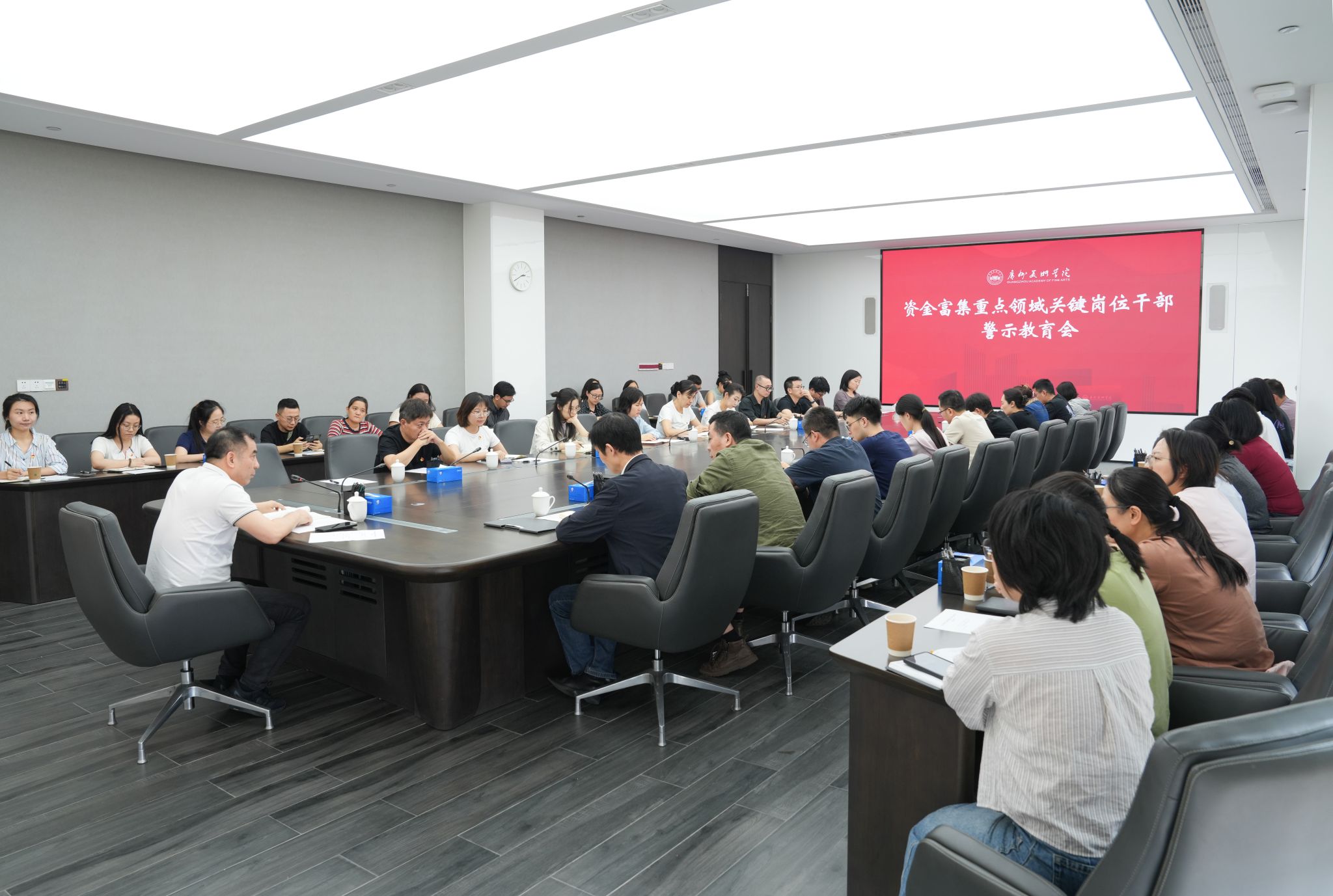 4月22日下午,学校纪委在大学城校区召开资金富集重点领域关键岗位干部警示教育会。学校党委常委、副院长李金水,财务部、审计工作部、总务部、招标采购中心、国有资产管理办公室中层干部及相关工作人员参加会议。纪委副书记邹子如主持会议。