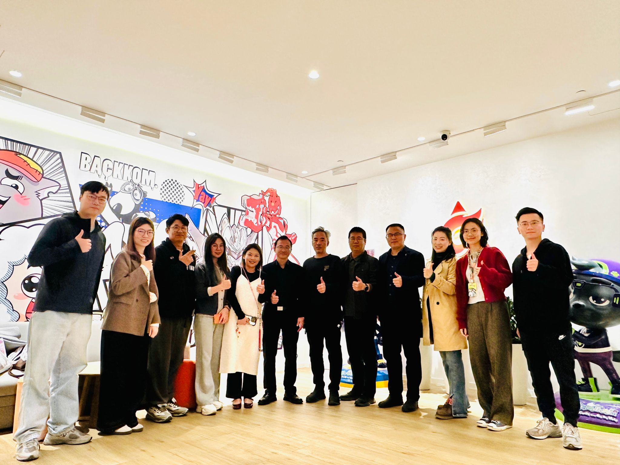 调研活动伊始,在奥飞娱乐副总裁萧凯力的引导下,孙凯军一行参观了奥飞文化长廊,近距离感受企业的品牌文化、IP创作理念及产业发展成果。随后的座谈交流中,双方围绕行业发展趋势、人才培养需求及校企合作新模式展开深入探讨。孙凯军表示,当前市场环境日新月异,AI技术的快速发展为文化创意产业带来了新的机遇与挑战,高校主动走出校园、对接企业需求已成为人才培养的关键举措。访企拓岗不是简单的供需对接,更是把企业最新的用人标准、职场能力要求精准带回学校,将产业一线的实践需求融入人才培养全过程。广美将以此次调研为契机,积极探索校企联合培养的体制机制创新,秉持"三全育人"理念,邀请企业行业专家走进课堂、参与课程设计和项目指导,让教学内容与产业需求同频共振,助力广美学子既夯实艺术专业功底,又提升适应职场的综合能力,实现高质量充分就业。