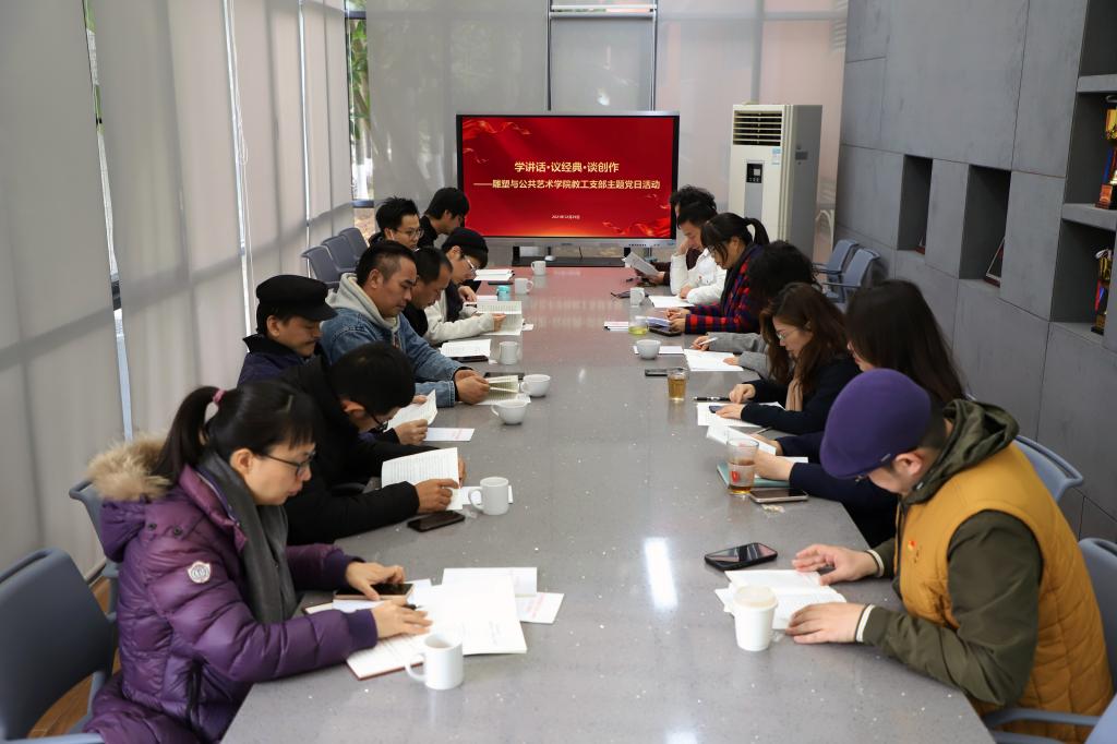 为深入学习习近平总书记在中国文联十一大、中国作协十大开幕式上的重要讲话,12月29日下午,雕塑与公共艺术学院教工党支部在大学城校区开展“学讲话·议经典·谈创作”主题党日活动。