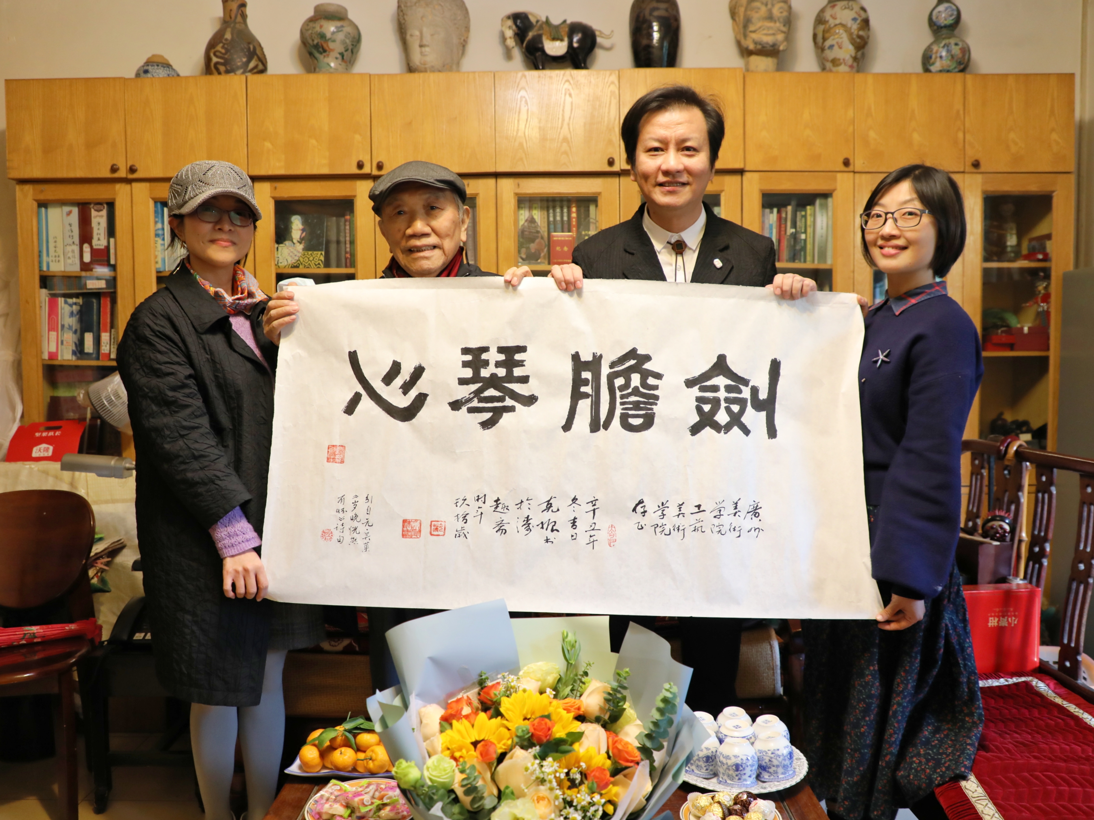 为深入推进党史学习教育,进一步强化师德师风建设,12月上旬,工艺美术学院开展“学党史、崇师德、铸师魂”主题活动,工艺美术学院院长兼党总支副书记齐喆、专职副书记王新宏、各教研室主任及青年教师代表一行走访慰问蔡克振、曹国昌两位离退休老教授,给他们带去学院全体师生的问候与祝福。