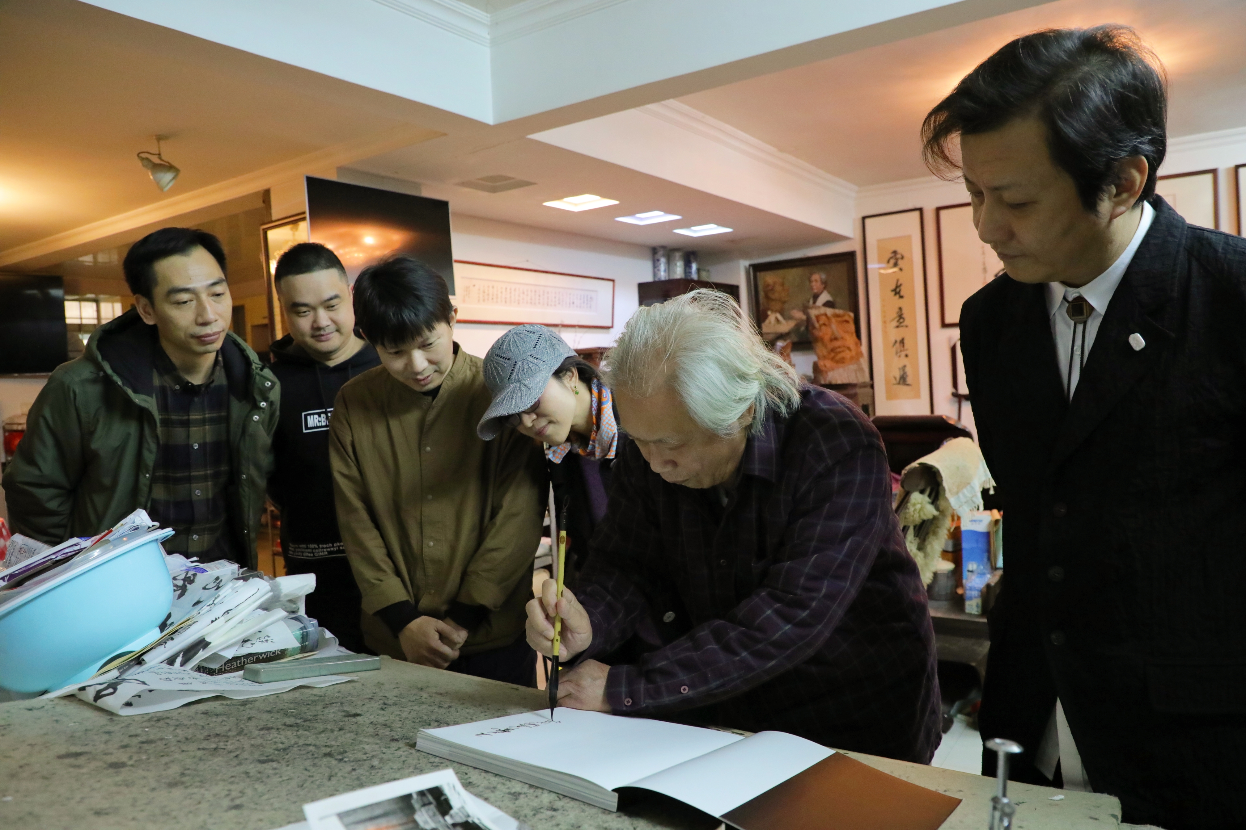 活动结束后,蔡克振教授现场挥毫泼墨,创作《剑胆琴心》《常闻漆香》两幅书法作品并赠予工艺美术学院,曹国昌教授将亲笔签名的个人作品集赠予学院。两位老教授勉励青年教师要牢固树立以人民为中心的艺术创作导向,坚守为党育人、为国育才的教育初心,牢记为社会服务的使命,为推动新时代教育工作贡献自己的力量。