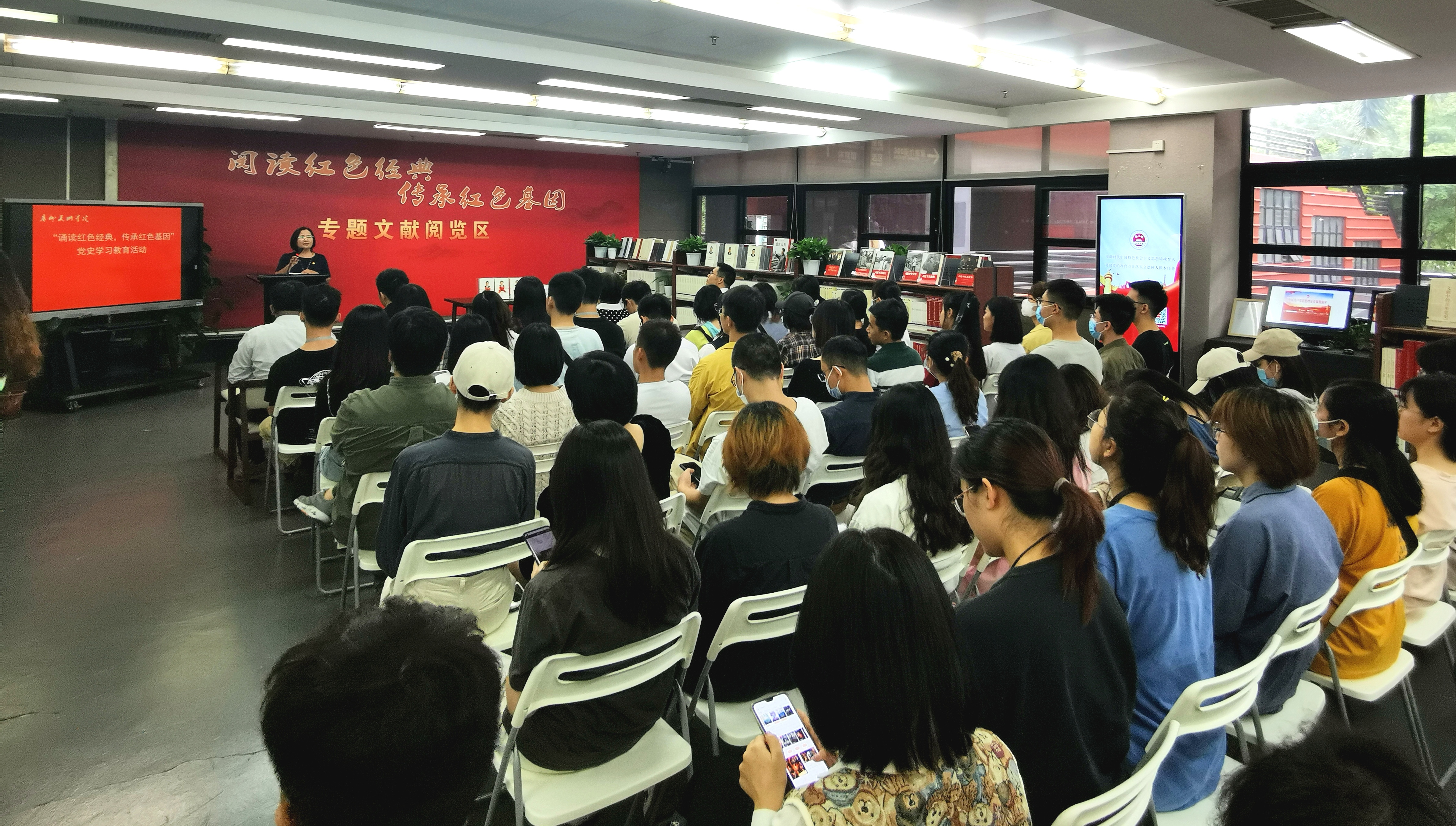 刘淑贤表示,在中国共产党百年奋斗历程中,从马克思主义理论、毛泽东思想、邓小平理论、三个代表重要思想、科学发展观,到习近平新时代中国特色社会主义思想的记载与传播中,文献这一文化载体与工具发挥了重要的作用。图书馆构建红色经典专题文献阅览区旨在为全校师生提供党史学习教育资源与红色美术创作素材,搭建学校特色教育平台。