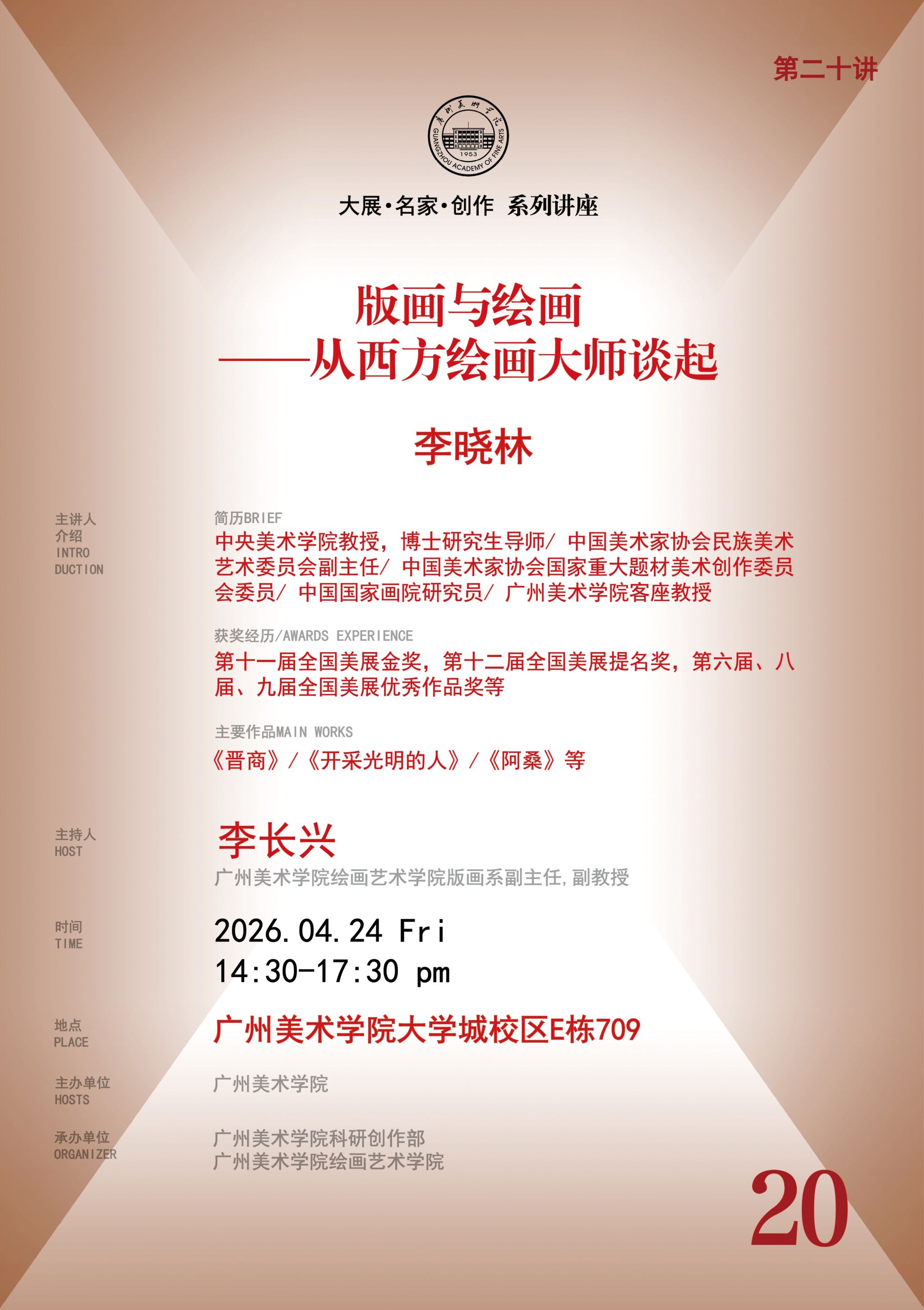 主讲人:李晓林 中央美术学院教授,博士研究生导师,中国美术家协会民族美术艺术委员会副主任,中国美术家协会国家重大题材美术创作委员会委员,中国国家画院研究员,2024年新澳门原料大全客座教授